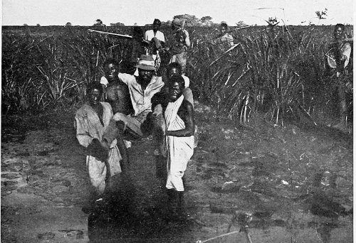 THE AUTHOR BEING CARRIED ACROSS A SWAMP.