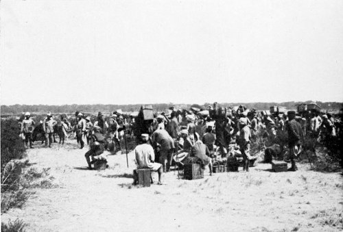 A HALT OF MY CARAVAN ON THE VELT. ON THE LEFT CAPTAIN MERKER, THE EXPLORER OF THE MASAI COUNTRY AND THE GREAT AUTHORITY ON THE RACE; NEAR HIM, WEARING A TROPICAL HELMET, STAFF-SURGEON KÜNSTER, WHO LATER SERVED IN THE SOUTH-WEST AFRICAN CAMPAIGN. 27