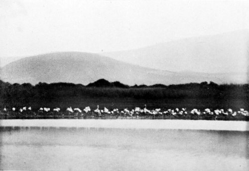 8 The pachyderms seem to feel no ill effects from the natron-bearing water; but for men the water of the lake—at least, near my camp—proved very unpleasant. Our drinking water was obtained from a small marsh near the shore of the lake.