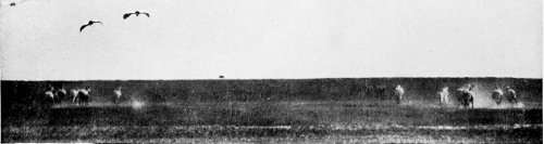 The wonderful flight of the velt-fowl, their calls and cries, their hurry and bustle, afforded me ever new interest. It always seemed to me as though the wide wilderness here sent out its lovingly guarded favourite children as envoys, with the mission of making it known that even now, in this dull, barren time, life has not died out even in the most remote deserts. So I see and hear them once more in fancy, beautiful, timid, and full of the joy of life. It is thus their countless millions enliven the wastes of Africa, as well as the endless tundra marshes of Asia.