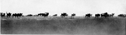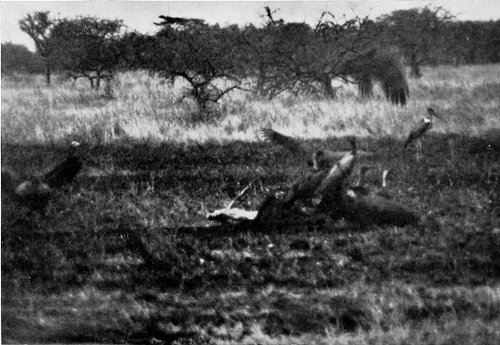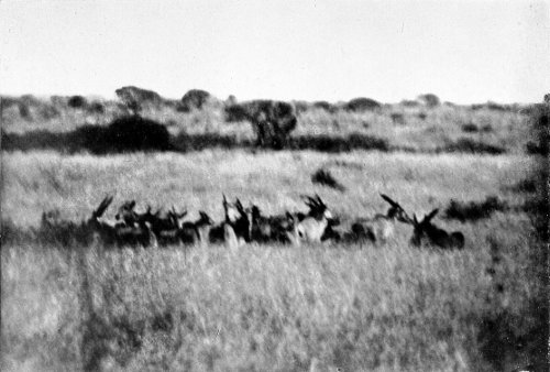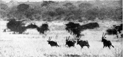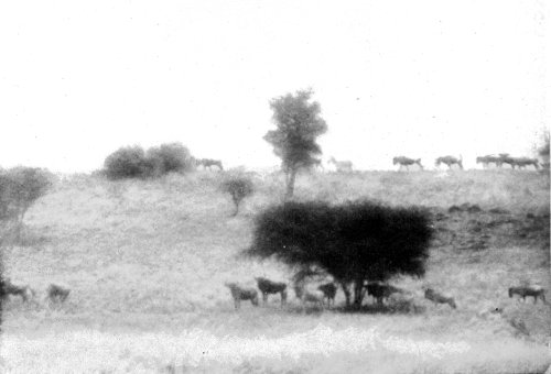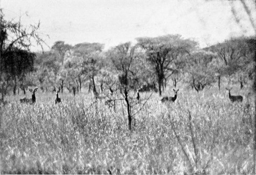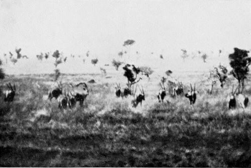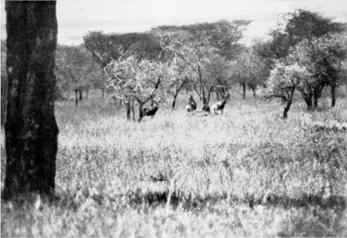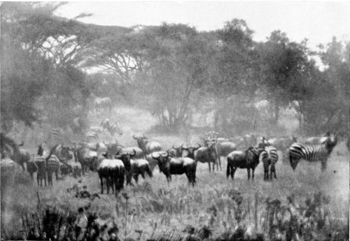 Think of all this animal life, bathed in the fulness of the tropical sunlight! All depths and shades of colour play before our eyes. Strongly cast shadows, ever changing 28 with the position of the sun, alter again and again the whole appearance of this world of life, and from minute to minute it presents new riddles to any one who has not had years of experience in the wilderness. When the glittering light of the midday hours is tiring and confusing the sight, one often can hardly tell for certain whether it be a living multitude stretching out in the distance before one, or whether the play of the sunlight is imparting a semblance of life to scattered clumps of thorn bushes.