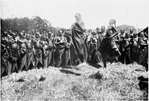 But the times have changed, and so it comes to pass that my people too join in the dance, which lasts late into the night: that songs of the warriors and the women—“‘Singolioitin loo-‘l-muran” and “Loo-‘ngoroyok”—ring out through the darkness, the chorus finding a manifold echo with its oft-repeated “Ho! He! Ho! Na! He! Hoo!” It is a “Leather Stocking” kind of poetry, and indeed the redskins of the New World and the Masai here in Dark Africa seem to me alike. The former had to yield to civilisation, the same fate awaits the latter.