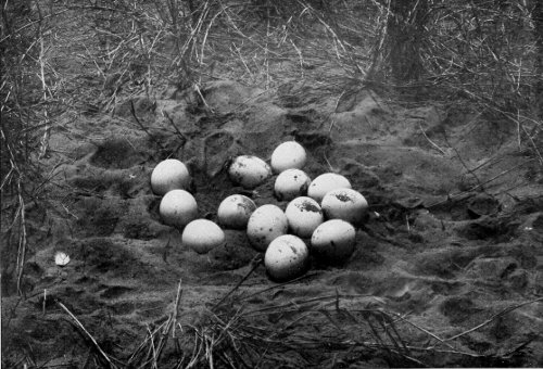 Many other typical bird-voices live in my memory. I hear the peculiar plaintive cry of the large cormorants that are busy with their fishing by the salt lakes of the wilderness, a cry that seems most fitted for these solitudes. The mysterious chattering and chirping of the little swamp-fowl come to my ear from the shallows and the bushes along the banks of silent rivers of the primeval forest, a bird-language so strange that the natives believe the birds are conversing with the fish in the stream. I hear the cackling of the knowing Nile-geese, that seem to be always engaged in conversation; when on the wing, too, a pair of them, in their affectionate fidelity, have always some warning, some reminder of something or other to call out to each other. Where their cry resounds one hears also frequently that of the wonderful, wailing peewit; it has a plaintive and melancholy effect on the mind of the listener. Far different is the noisy outcry of its brightly coloured cousin, a denizen of the thirsty wilderness (Stephanibyx coronatus, Bodd.). Shrill and harsh the voice of the bird rings out, a watch-cry by day and night, and when in bright moonlight nights they fly in flocks over the camp. Swarms of these remarkable birds, the police of the wilderness in feathered uniforms, flutter around the traveller as he approaches. They ruin 309 his attempts to stalk wild animals, and their strident screeches, to which all other animals hearken, haunt him long after, as also the call and cry of the large, yellow-eyed thick-knee, an inhabitant of the loneliest solitudes. But I cannot imagine the low shores of African lakes and the sea-coast without the cry of the widely distributed sandpiper, which has its home in the far north. In winter its low plaintive cry is heard at every step: but even in summer the trained ear can distinguish it here and there. These individual stragglers from the north are thus to be found during all times of the year in this distant country, while the most of their kindred tribe have 310 successfully made their way to the Polar lands, their usual summer breeding-place.