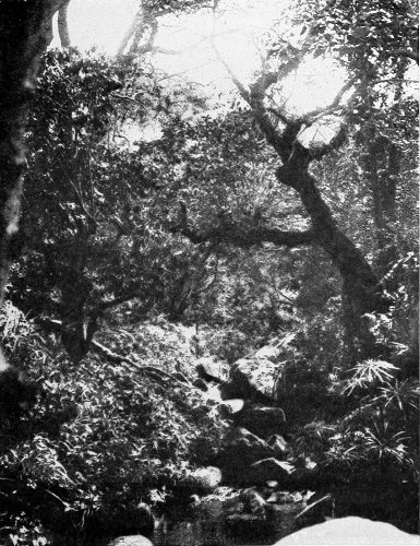 Suddenly, a squealing and chattering. There is a scurry up and down the tree-trunks, and again there is a strange sound of spitting and growling. Just now there had come over us a feeling such as is expressed in Böcklin’s43 masterly picture, directly inspired by nature, Schweigen des Waldes (the “Silence of the Forest”). We had almost expected each moment that legends set before us by the power of his genius would here become 294 realities; we felt that here one might surprise nymphs and dryads. The spell is soon broken. The gnomes of the primeval forest, the tree-climbing hyraxes, have scared away the silence. Wonderful to say, these dwarfish hoofed animals, the nearest still surviving relatives of the rhinoceros, are here scrambling up and down on the trunks of the venerable trees.