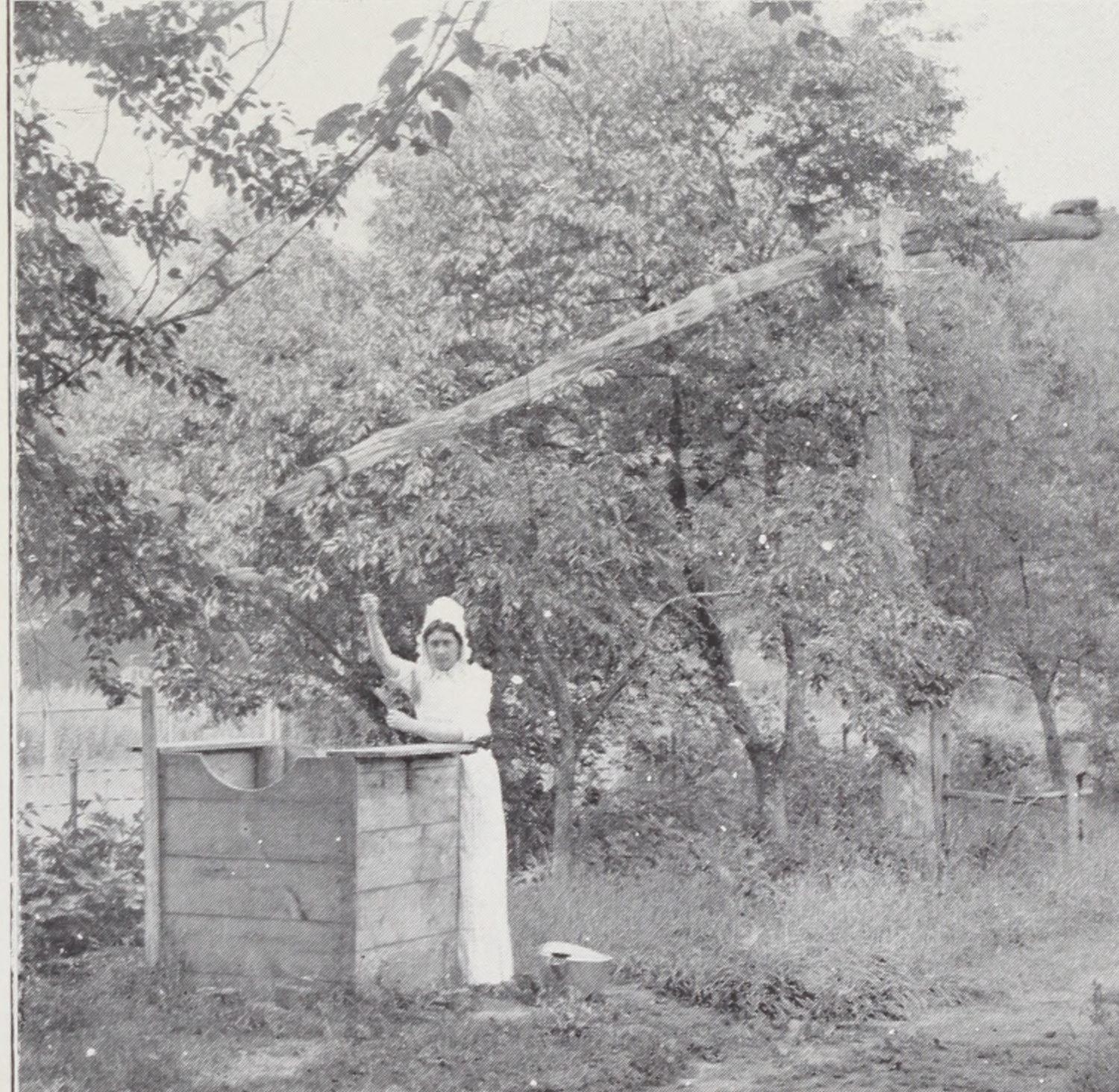 The present level of the Gully road is much lower than it was even fifty years ago, and there is a legend that one hundred and fifty years ago a great freshet cut out large quantities of earth here, but the higher level could hardly have been of long duration, for Mrs. Gibbs recalls that a number of years ago, while workmen were digging a trench, possibly for the sewer, they brought up what are thought to have been Indian relics from a depth of twelve feet or more. Mr. Gibbs’s brother was passing at the moment of discovery and tried to purchase the find from the man in charge, as he regarded it of considerable ethnological value, but the contractor refused to sell, and when Mr. Gibbs and his brother returned to the spot the men had gone and their discovery with them, and to-day the exact character of the find is not known. Other Indian finds in this immediate neighborhood are a stone mortar and pestle and many arrow points on the Gibbs place. On the Sandford place, just above, a stone mortar hollowed out of a heavy block long stood by the well. This was kept filled with water for the chickens to drink from. When the place was regraded this stone disappeared, it having been probably buried.