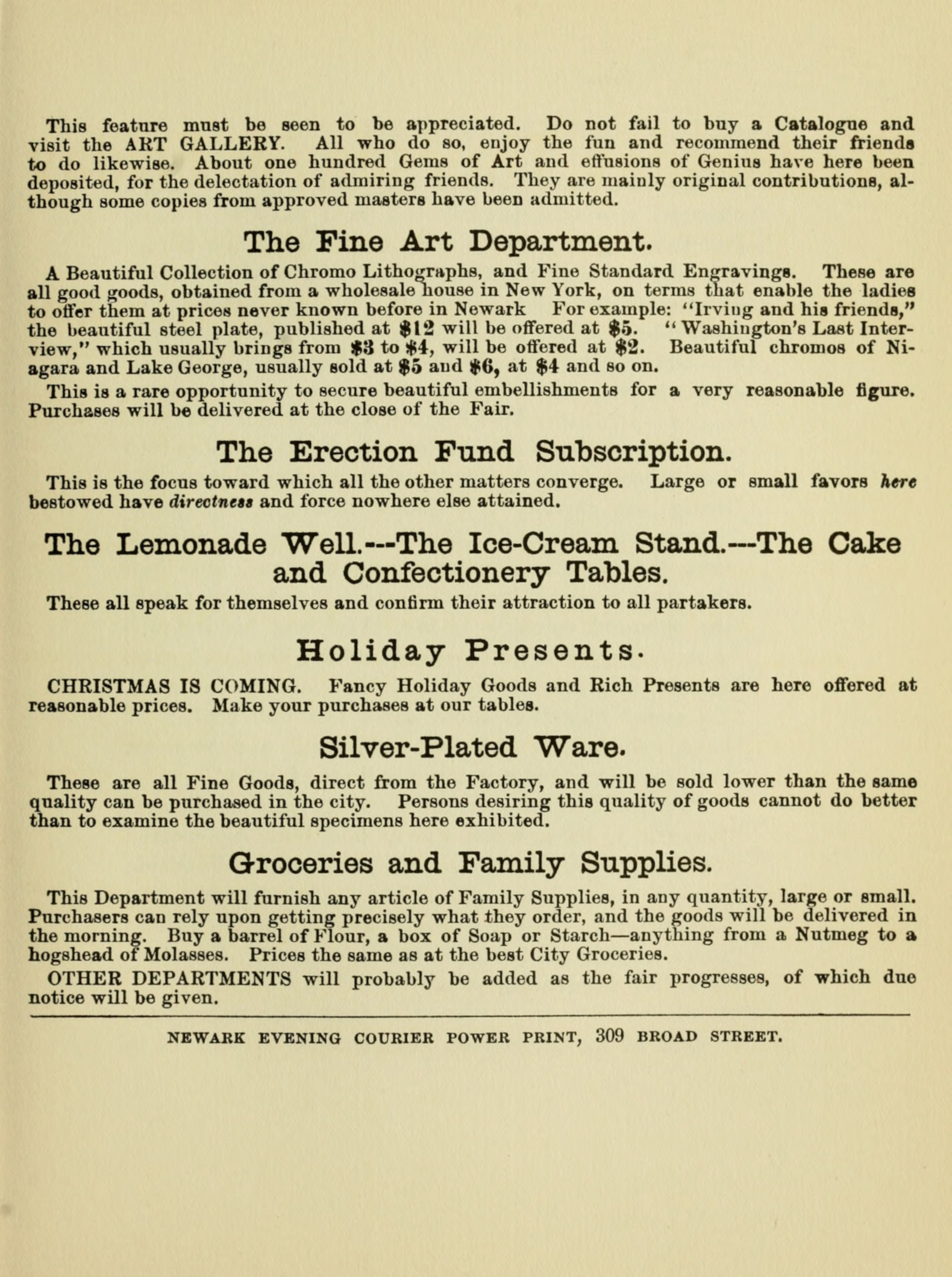 But, alas! on the fifth of April, 1871, our independence was lost forever and most of us were turned over to the tender mercies of the Newark politicians, who have ever since exercised a wonderful ingenuity in taxing us poor inhabitants to the limit and giving as little in return as possible. In fact the only thing we get for our taxes, aside from the fire department service, is an occasional policeman, who comes twice each year with tickets to sell for ball or excursion. Does the road need paving or sewering, the cost is assessed on the abutting property, and so is it with sidewalks, and even with the shade trees which the city fathers insist are good for us, and having planted them they send us a bill therefor. The Woodsider has never yet been able to ascertain what he is taxed for, unless it is to keep the politicians in good running order. This remark should be qualified to some extent so far as the police are concerned, for no locality could have a better protector than Mounted Officer Niblo, who has long been on this post and who, we hope, will long remain; there is also a patrolman who does his duty as though his job depended on it, but the majority of them seem to have the true politician’s idea as to what is good for them.