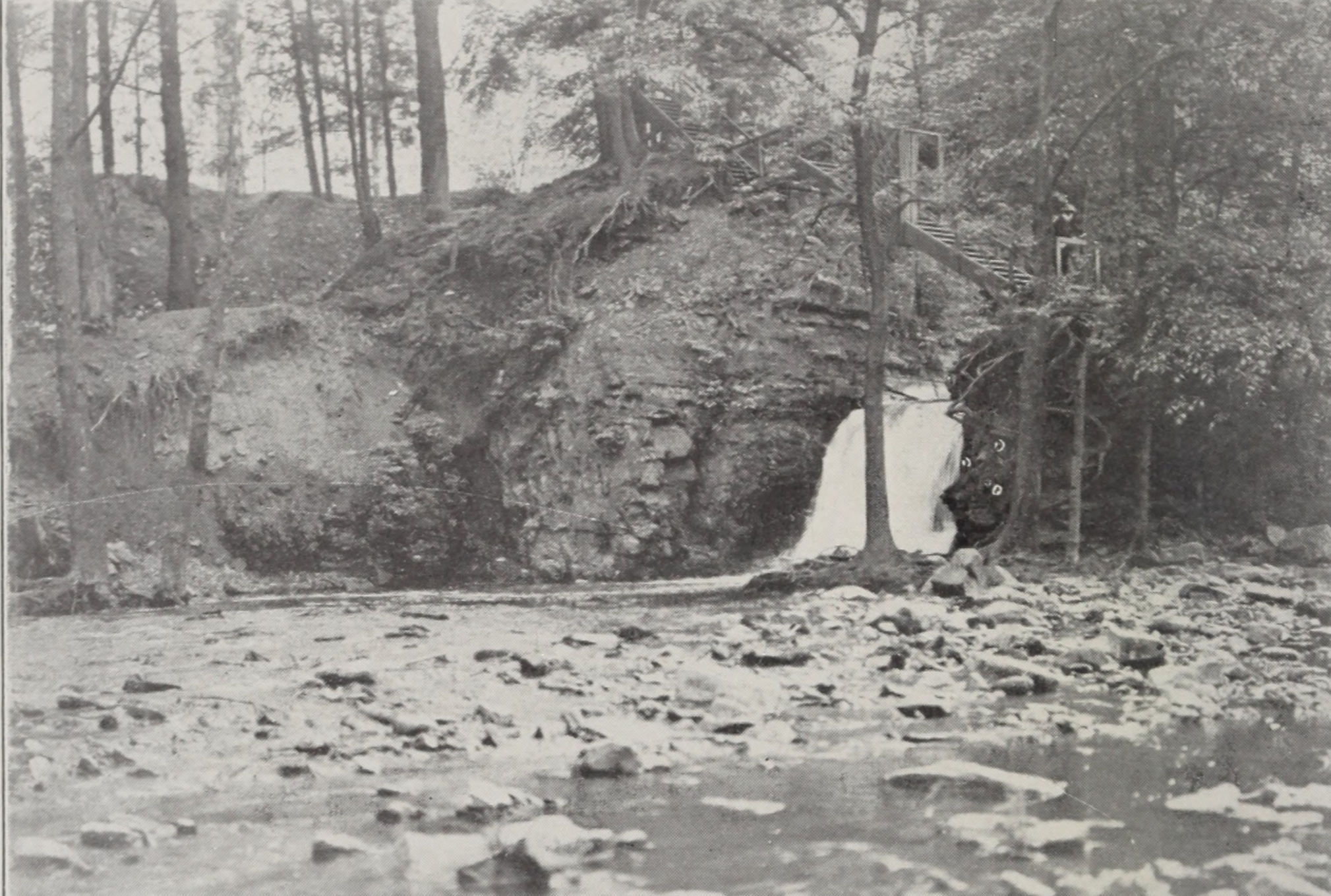 Groves of trees were numerous and beautiful. “Bird’s Woods” along Second river with its magnificent old pines and hemlocks, the outer edge of the wood fringed with an undergrowth of laurel, while partridge berries gleamed from the depths of the moss underfoot, made an entrancing spot which has seldom been equalled, and the ruins of the old mills along the stream gave a picturesque touch that none who grew up with the region can forget.