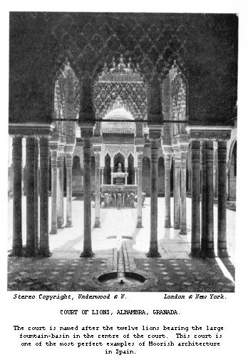 Toledo, the Type of the Spanish City—Its Architectural Monuments—The Intermingling of Arab and Christian Art—Granada—The Alhambra—Cordova—The Great Mosque—Seville, the City of Pleasure—The Special Character of the Streets—The Café’s and Shops—The Typical Andalusian—The Parks—The Sevillanas—Spanish Courtship—The Houses of Seville—The Patios—The Home-life of the Sevillians—Spanish Hospitality |