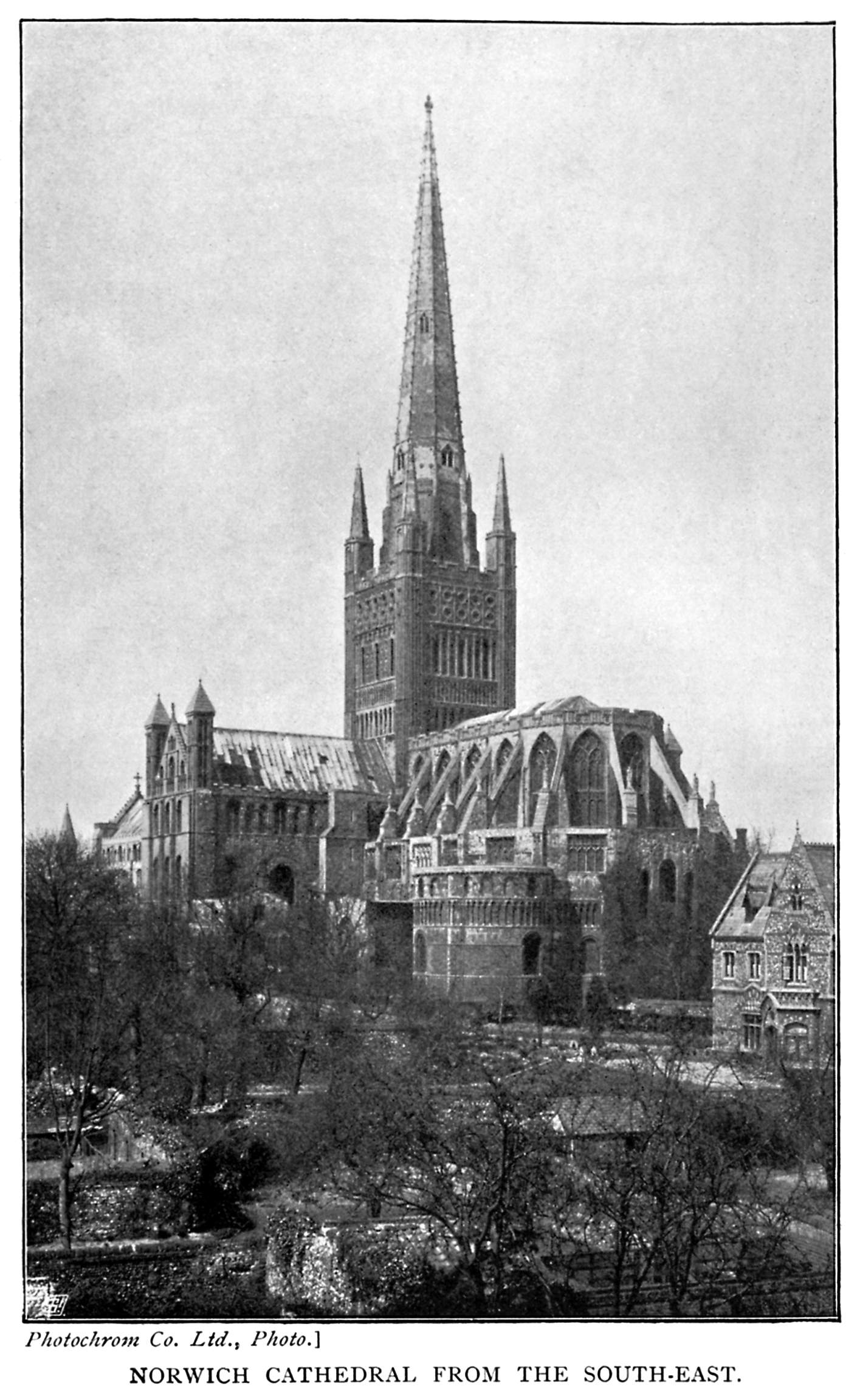 The task of writing a monograph, on such an essentially Norman Cathedral as Norwich, has been most pleasing to one who owns to an especial fondness for that sturdy architecture which was evolved in England during one of her stormiest epochs—from the end of the eleventh till the end of the twelfth century.