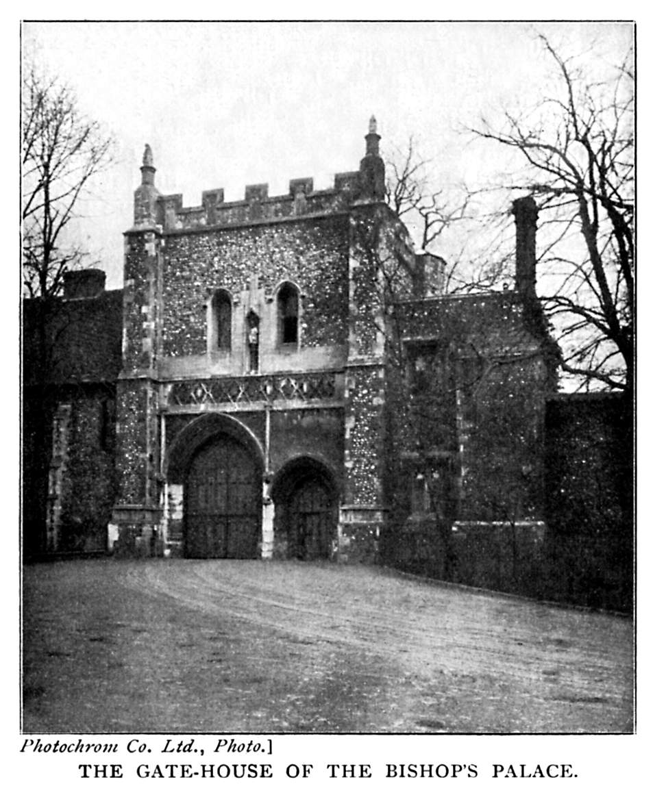 Bishop Walpole built the eastern walk of the cloisters, together with the chapter-house; he was translated to Ely about 1299, and the work carried on by his successor, Bishop Salmon, who built the south walk, also a chapel and hall attached to the bishop's palace. Of this nothing remains in the garden of the palace except a grand ruin, which is supposed to have formed the entrance or porch to the hall.