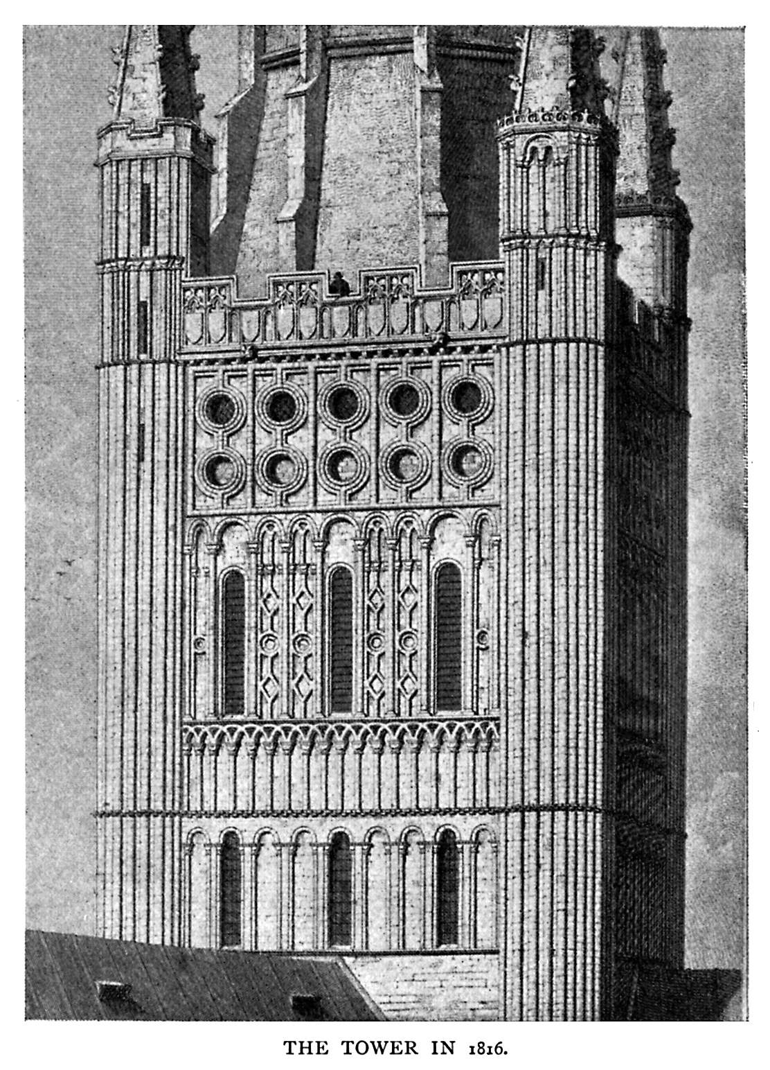 Herbert also provided the base for the tower only, probably up to the roof level; the remainder, up to the parapet, was finished about the time of Henry I., but at that earlier period it was without the stone spire which now adds dignity to the cathedral from any point of view.