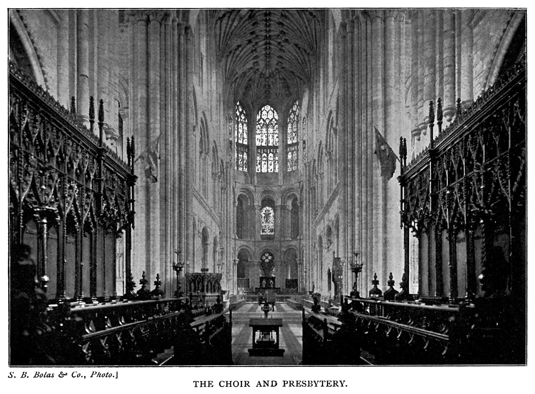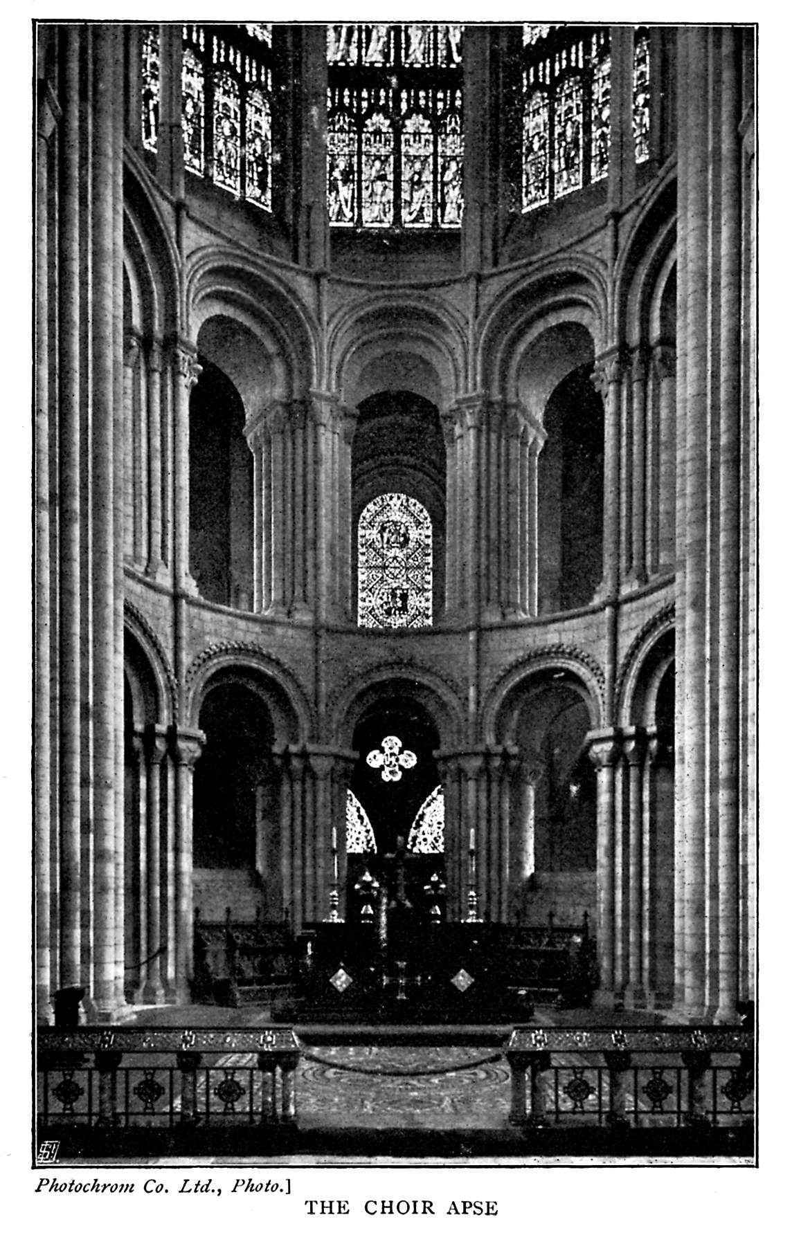 It is interesting to note that Herbert's early French training influenced him in the planning of the beautiful eastern termination to his cathedral, and the grand sweep of the procession path. Similar apsidal terminations, of slightly later date, once existed at Ely, and still remain in a modified form at Peterborough.