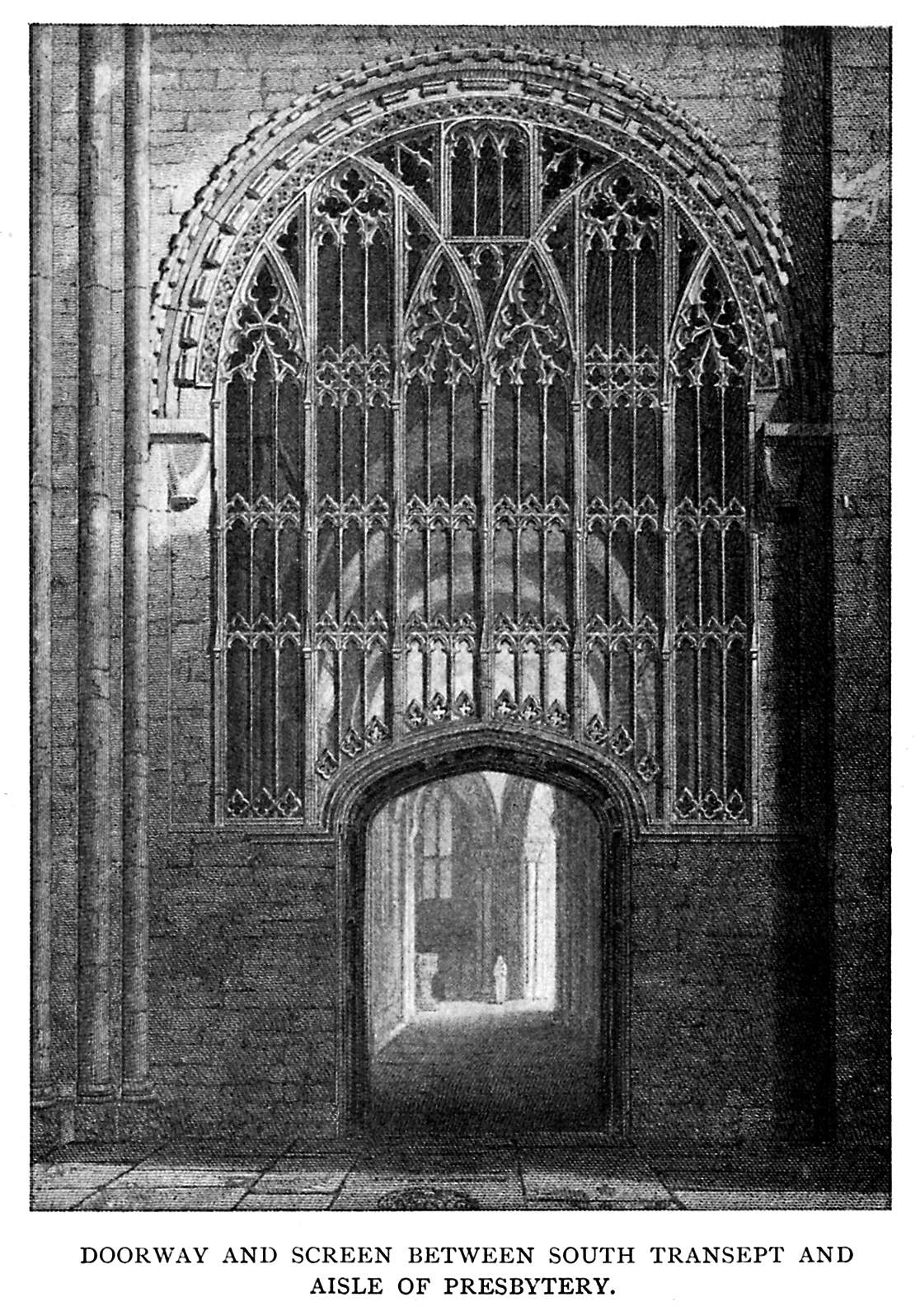 During this episcopate the rood screen was erected, and a sumptuous monument placed over the grave of the founder.