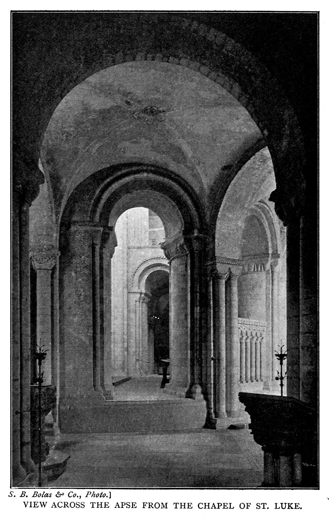This lengthy preamble may seem somewhat unjustifiable, but if we are to study any building aright, and if we are to interpret in any measure its meaning and symbolism, it cannot wholly be done on any line of abstract aestheticism or [7]archaeological instinct, however intuitive it may be: we must in some measure think of the builders of old times and of the influences which with them produced its inception and have left it to come down the ages to us.