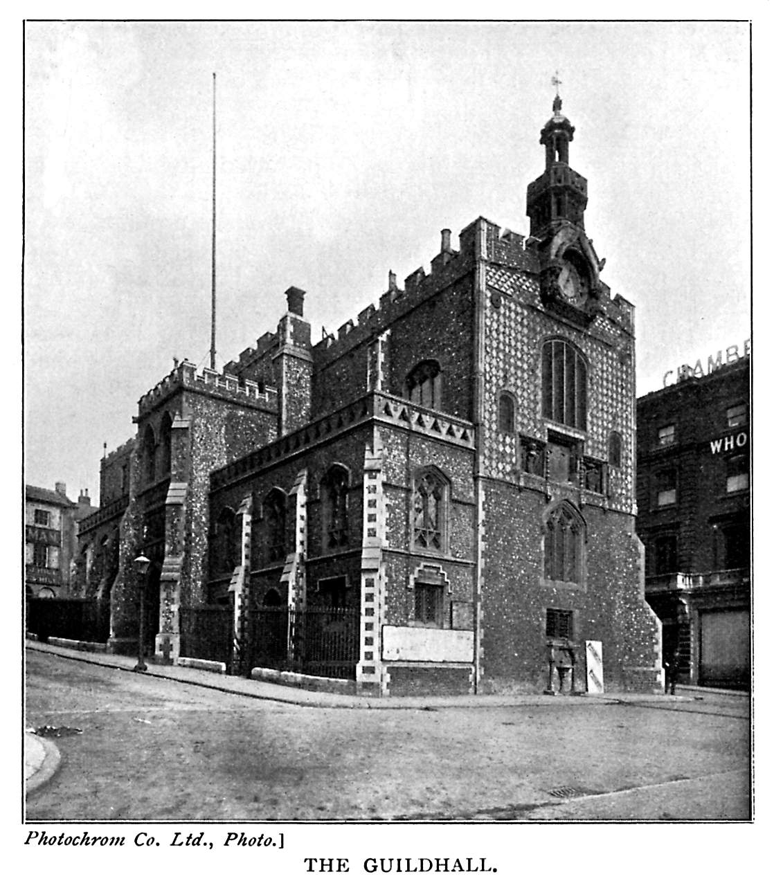 The Guildhall contains many interesting relics of the civil life of Norwich during the sixteenth and seventeenth centuries, including those of the famous Guild of S. George, established in 1385 and dissolved in 1731 (see p. 103).