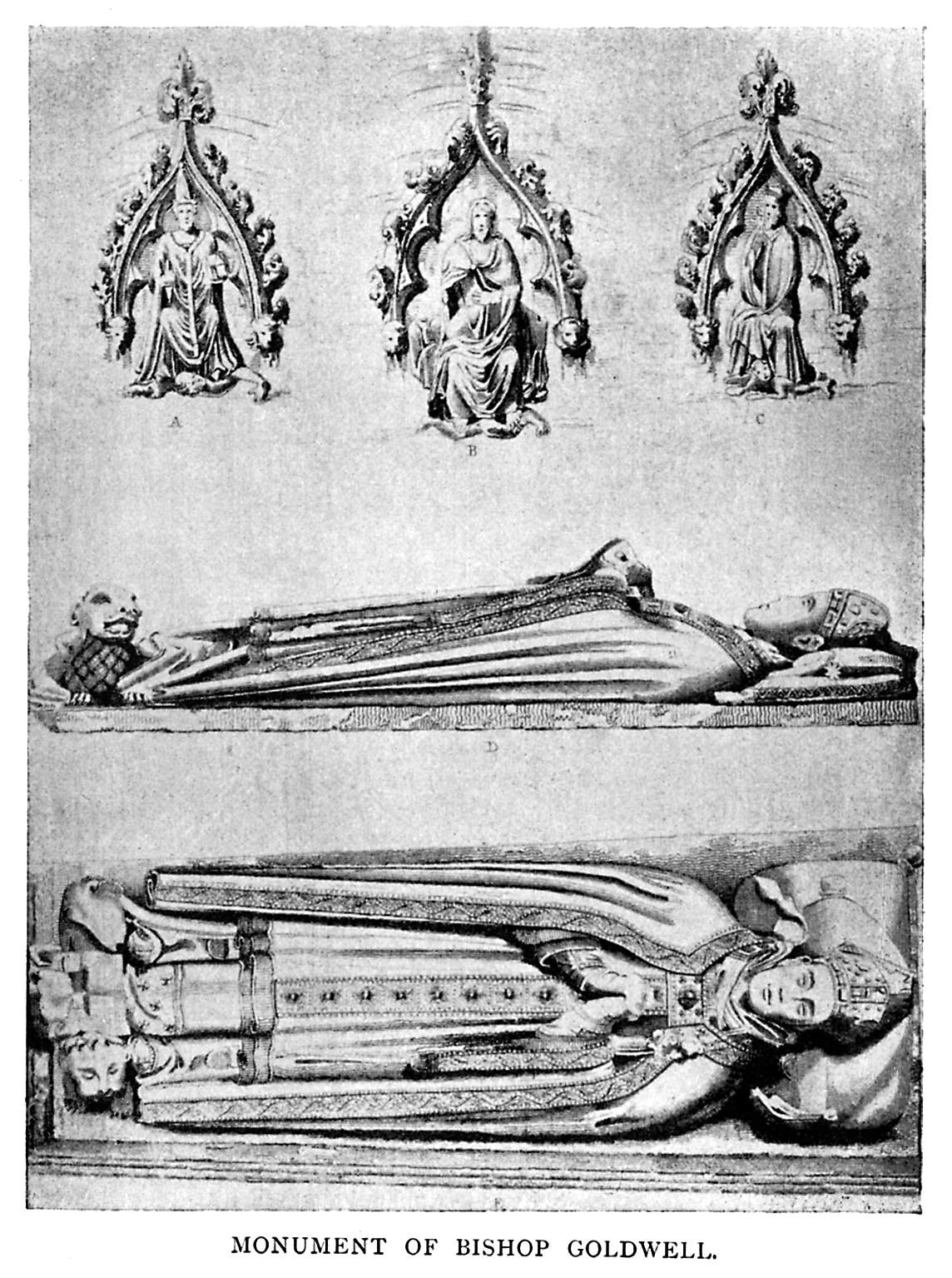 James Goldwell (1472-99) had been ambassador of Edward IV. at Rome. He was nominated by the Pope, and consecrated at Rome, October 4, 1472. He died February 15, 1499.