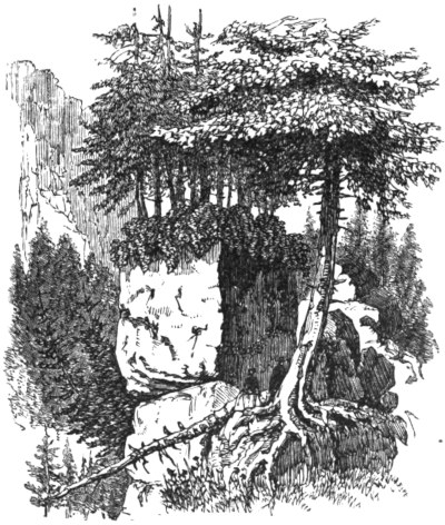 Come by faith to Jesus, for without him you perish for ever. Did you ever notice how a fir-tree will get a hold among rocks which seem to afford it no soil? It sends a rootlet into any little crack which opens; it clutches even the bare rock as with a huge bird's claw; it holds fast, and binds itself to[56] earth with a hundred anchorages. Our little drawing is very accurate. We have often seen trees thus firmly rooted upon detached masses of bare rock. Now, dear heart, let this be a picture of yourself. Grip the Rock of Ages. With the rootlet of little-faith hold to him. Let that tiny feeler grow; and, meanwhile, send out another to take a new grasp of the same Rock. Lay hold on Jesus, and keep hold on Jesus. Grow up into him. Twist the roots of your nature, the fibres of your heart, about him. He is as free to you as the rocks are to the fir-tree: be you as firmly lashed to him as the pine is to the mountain's side.