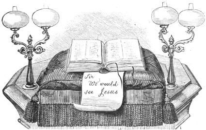 Be much in hearing concerning Jesus. Souls by hundreds come to faith in Jesus under a ministry which sets him forth clearly and constantly. Few remain unbelieving under a preacher whose great subject is Christ crucified. Hear no minister of any other sort. There are such. I have heard of one who found in his pulpit Bible a paper bearing this text, "Sir, we would see Jesus." Go to the place of worship to see Jesus; and if you cannot even hear the mention of his name,[60] take yourself off to another place where he is more thought of, and is therefore more likely to be present.