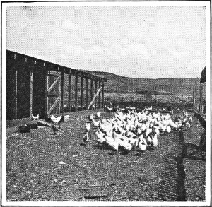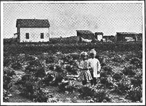 As we ride on the overland trains across the great desert stretches of the far West, our eyes are fed full of color. In the midst of the riot of rich tints, we turn eagerly to occasional green spots that relieve the blazing beauty of the landscape, and our glances linger there with a sense of rest. These green spots are desert farms—fresh oases where, under the spell of water, the soil is wakening from its centuries of slumber and yielding up its stored wealth. These desert farms make a strong, human appeal to the passing traveler. They tell an assuring story of man’s return to the soil and of rich returns from the soil—a story of well-being and content attained, in substantial, comfortable homes. In some such modest way as pictured on the preceding page the settler begins his conquest of the desert. The measure of his success and prosperity lies in his hands. The wealth is there ready to be harvested.