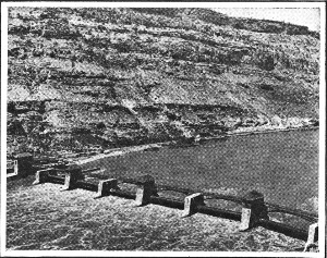 In northern Wyoming, near the eastern entrance to Yellowstone National Park, the South and North Forks of Shoshone River plunge downward from the steep slopes of the Rockies and unite in a broad level-floored valley which in early geological times was a beautiful mountain lake. At the lower end of the valley the river rushes abruptly into a deep and narrow canyon. The entrance to the canyon, which is only sixty feet wide at the bottom, was selected as the site for the Shoshone dam. Before construction began it was necessary to blast a highway through the gorge for a distance of eight miles, in order to connect the work with the nearest railway. This highway is now a part of the road system into the Park, and is known as Cody Way.