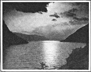 The dam is a wedge of concrete, with curve up stream, 328 feet in height, and 200 feet long on top. It has restored the lake of olden times, and this beautiful body of water is now one of the attractions of the trip to the Park. The stored water will be utilized for the irrigation of 150,000 acres of land on the mesa (a high, broad, flat table-land) below Cody. This region until 1907 was a worthless and uninhabited desert. Today it is occupied by more than 700 farm families and three growing towns.