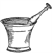 Japhet, who is taken in hand and apprenticed to the worthy practitioner, describes the shop looking upon Smithfield Market, with its usual allowance of green, yellow, and blue bottles. All the patent medicines in the known world were kept in stock, even to the all-sufficient medicine for mankind of Mr. Euony. The shop was large, and at the back part there was a most capacious iron mortar with a pestle to correspond.
