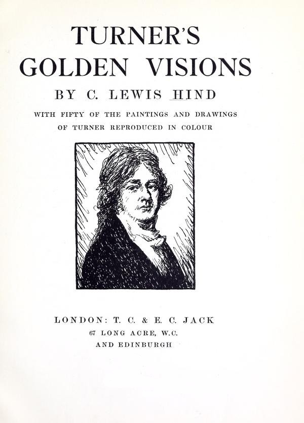 In writing on Turner one must necessarily make levies on the works of other authors. I give hearty acknowledgment to Mr. A. J. Finberg's Inventory of the Drawings of the Turner Bequest (printed for His Majesty's Stationery Office), which he himself has used with skill and accomplishment in his Turner's Sketches and Drawings (Methuen & Co.). Among the other books consulted and quoted from are Turner, by Sir Walter Armstrong (Agnew & Sons); Turner, by W. L. Wyllie, A.R.A. (G. Bell & Sons); The Turner Drawings, by E. T. Cook (Pall Mall Press); The Engraved Work of Turner, and Turner's 'Liber Studiorum', by W. G. Rawlinson; the delightful Extra Numbers of The Studio on Turner, and the excellent little book by the late Cosmo Monkhouse. Ruskin, of course, is frequently referred to and quoted, also the inaccurate but indispensable Thornbury, whose Life of Turner all succeeding writers on Turner have borrowed from and upbraided.
