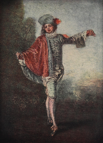 Claude Gillot's influence upon the formation of Watteau's taste and talent must not be underrated.[Pg 22] He was a man of much ability, quite unlike the cold and formal painters of his time. His was a gay art: the mythology of lovers and nymphs, and the light life of the Italian Comedy—Pantaloon, Columbine, and Pierrot—"strange motley—coloured family, clothed in sunshine and silken striped." Gillot is certainly one of Watteau's earliest inspirers: his revolt against convention (even if revolt be too strong a word) influenced Watteau to the end of his life. With this happy rencontre began the serious development of Watteau's art. Life, no longer sordid, became luxurious in thought and application. Supersensitive, the artist mind of the pupil touched and extracted the taste of his master, improved upon it, and strengthened its own tendency for all that was dainty, elegant, and whimsical. Gillot's was a good influence; a capable craftsman, he gave freely, but the jealous side of his nature soon recognised in his intuitive pupil not only an adaptation of his own methods, but also an improvement upon them. In Watteau, no doubt, he saw his own faults, but he also saw his own virtues made finer and rarer. Whatever the reason, over-much similarity of temperament, professional[Pg 23] jealousy, or irritability on Gillot's side; ingratitude, sensitiveness, fickleness, or a sense of superiority on Watteau's, this mutually helpful friendship of five years ended abruptly. We may never know the cause of the quarrel, but we do know that Watteau, although he always warmly praised Gillot's work and admitted his personal indebtedness, refused to be questioned in regard to their disagreement, and was silent about it even to his most intimate friends. Curious to relate, Gillot ceased to paint when Watteau left him, and became an etcher and engraver. Watteau certainly dated the knowledge of his own talent from his association with Gillot, his first real master.