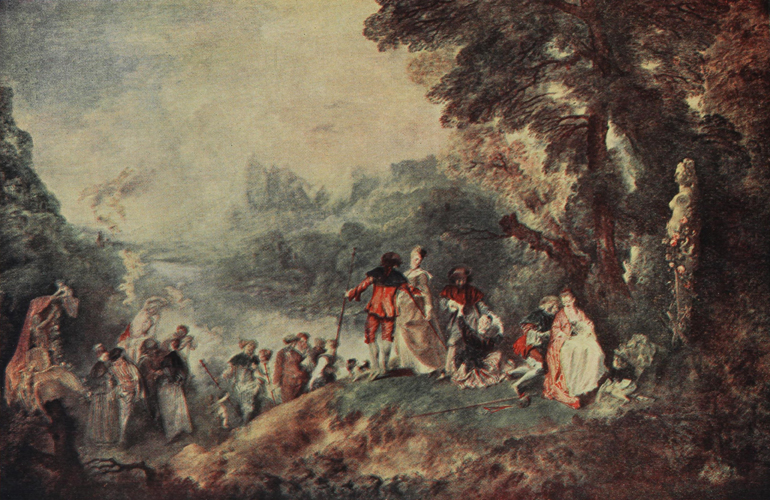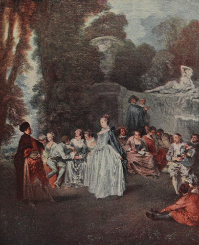 Watteau finds himself, not wholly perhaps, but the formative period has passed. The artist is made; is himself, gives himself. No longer will the classicists prevail; no longer will art be cold and eclectic. The youth from Valenciennes will call Paris back to Nature, and through a temperament will show the world familiar things, will let his imagination play, taking his good where he finds it, but resolving it into something that is his own. He will see with his own eyes. He will paint pictures as he pleases.