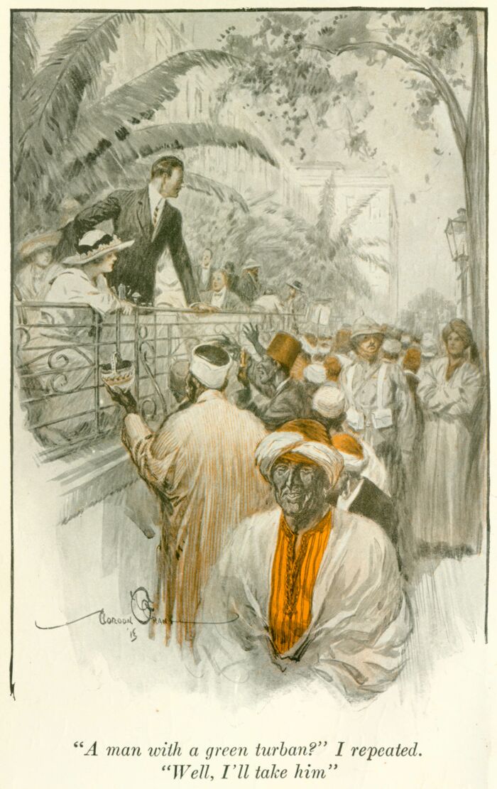 So I put off falling in love with Rosamond Gilder till I should have seen Anthony, and tidied up my distracted mind. A little later would do, I told myself, because (owing to the fact that my ancestral castle had figured in Biddy's tales of long ago) I was annexed as one of the protégés; allowed to make a fifth at the small, flowery table under a desirable porthole in the green and white restaurant; also I was invited to go about with the ladies and show them Cairo. Just how much "going about," and falling in love, I should be able to do there, depended on "Antoun Effendi." But when Biddy congratulated me on my luck, and chance of success in the "scheme," I said nothing of Anthony.