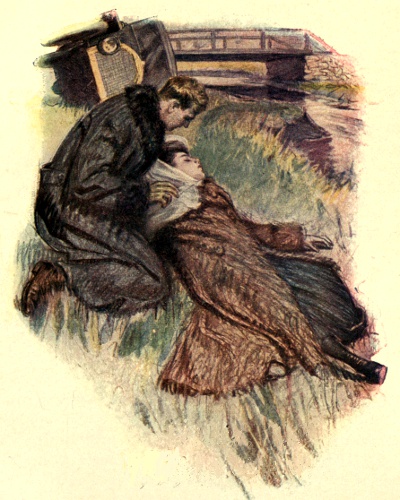 A cataract of sparks which showered before his eyes dimmed his sight at first, but in a moment he saw a slight, grey-clad figure lying limply on the ground not far away. As for the motor-car which rested on its side at a little distance, its pleasant purring stilled, Loveland had forgotten all about it.