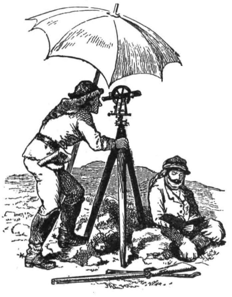 From a sketch by the Author. A theodolite-party at work. | |