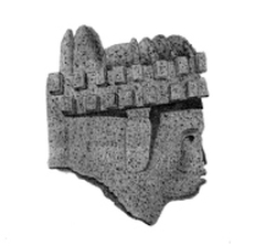 Fragments of a female, sitting statue were shattered in the vicinity of the place, that should have been occupied by the tenth statue. The head was adorned with a turban-shaped head-dress, without any trace of a tenon. It is, however, very uncertain whether this statue has formed part of the series.