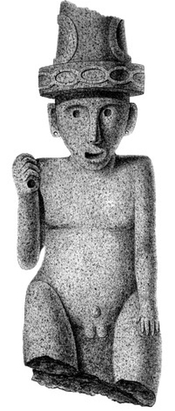 The results of my antiquarian researches in Zapatera may be referred to three stations: 1:0. The first station is Punta del Sapote; the extreme north-western point of the island, where statues, potteries, and stone relics were found. This station is beyond all comparison the most important one, because it has never, as far as I know, been examined, nor even mentioned. It possesses so much greater importance, as several statues were found in their original position, thus affording an insight into the manner how they were used. 2:0. The second station is Punta de las Figuras. It forms part of the edge of the crater, sloping softly towards the lake, between Laguna de Apoyo and Bahia de Chiquero. It has been previously visited by Squier, who has given figures of several of the statues. Besides those mentioned by him, many of which I did not find, I lighted upon some that had escaped his attention. In this locality only insignificant remains of pottery were met with. 3:0. The third station is the little island of Ceiba, which, instead of statues, that are wanting, offers some very well preserved rock-carvings of evidently very ancient date, and, besides, valuable relics of earthen-ware and stone. Although my visit to Zapatera was posterior in time to my stay in Ometepec, I shall begin the detailed description of the antiquities with those of the first station in Zapatera.