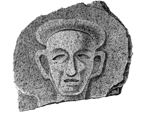 24. Pl. 35. Head of an animal, well cut. It seems to have formed part of the side of a stone vase or can. Zapatera, Punta del Sapote.