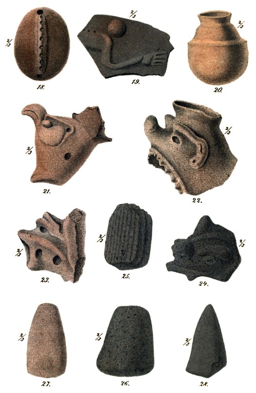 The smaller objects found by excavations made in, and beside these mounds, will be spoken of in connection with the other ceramic relics, discovered in Ometepec and Zapatera.