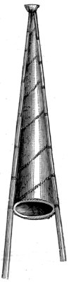 The mode in which individual nations or tribes are in the habit 2 of embellishing their musical instruments is sometimes as characteristic as it is singular. The negroes in several districts of western Africa affix to their drums human skulls. A war-trumpet of the king of Ashantee which was brought to England is surrounded by human jawbones. The Maories in New Zealand carve around the mouth-hole of their trumpets a figure intended, it is said, to represent female lips. The materials for ornamentation chiefly employed by savages are bright colours, beads, shells, grasses, the bark of trees, feathers, stones, gilding, pieces of looking-glass inlaid like mosaic, &c. Uncivilized nations are sure to consider anything which is bright and glittering ornamental, especially if it is also scarce. Captain Tuckey saw in Congo a negro instrument which was ornamented with part of the broken frame of a looking-glass, to which were affixed in a semicircle a number of brass buttons with the head of Louis XVI. on them,—perhaps a relic of some French sailor drowned near the coast years ago.