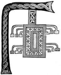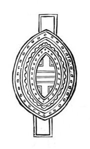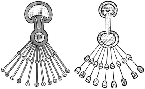 The Sistrum consisted of a frame of bronze or brass into which three or four metal bars were loosely inserted, so as to produce a jingling noise when the instrument was shaken. The bars were often made in the form of snakes, or they terminated in the head of a goose. Not unfrequently a few metal rings were strung on 15 the bars, to increase the noise. The frame was sometimes ornamented with the figure of a cat. The largest sistra which have been found are about eighteen inches in length, and the smallest about nine inches. The sistrum was principally used by females in religious performances. Its Egyptian name was seshesh.