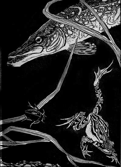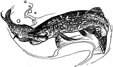 | The pike appeared among the reeds with wide-open mouth and rows of sharp teeth and angry eyes (Colour) | 40 |
