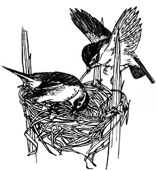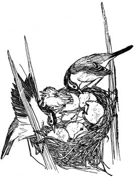 Close to the shore they found a place which they liked. They bound three reeds together with fine fibres, a yard above the water, and then wove the dearest little basket, which they lined with nice down. When the reeds swayed in the wind, the nest swayed too, but that did not matter, for it was bound fast and reed-warblers are never seasick.