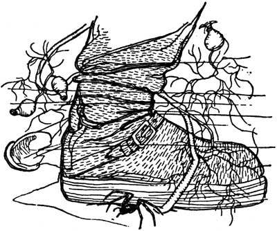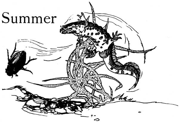 And down at the bottom lay all the frogs, buried deep in the mud, so that only their noses stuck out. It looked as though the pond were paved with frogs' noses. The plants in the water were as leafless as the plants on land. Hidden among the stalks and withered leaves, under the stones and in the mud lay animals sleeping, or eggs waiting for the spring to come and hatch them.