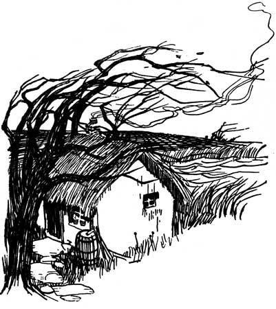 Men shouted and dogs barked. They put out the boat and rowed her with difficulty through the thick weeds. The woman of the pond stood outside her cottage, curtseying and pouring out tea.