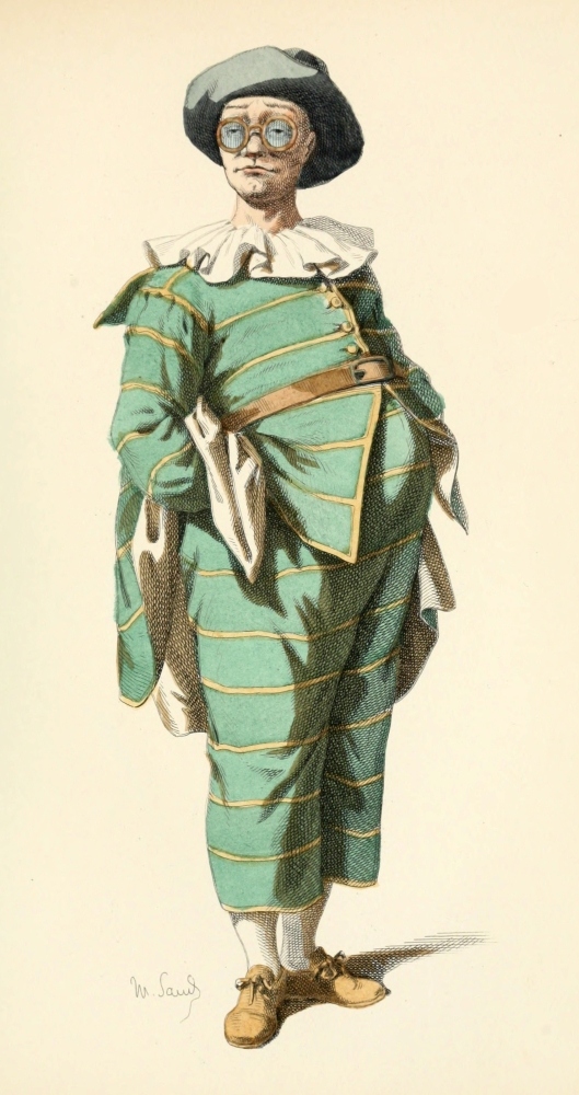 [76] The actors in Sacchi's company were: Antonio Sacchi, Truffaldino; Atanagio Zanoni, Brighella; Agostino Fiorelli, Tartaglia; Cesare Darbes, Pantalone; Adriana Sacchi Zanoni, Smeraldina; Antonia Sacchi, Beatrice; together with Ignazio Casanova and Gaetano Casali. How the parts of Leandro, Clarice, Rè di Coppe, Celio, Morgana, Creonta, Ninetta were distributed, we do not know. Antonia Sacchi (the Beatrice of the troupe) probably played Clarice.