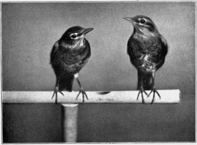 I have often taken birds in, expecting to let them go when they were large enough, but they simply would not, for they knew they would not know how to 173 take care of themselves or hunt their food. For instance, if I had not brought Bobbinette and Bobby in, they would have been killed, and it would be very cruel to turn them out now after the luxurious lives they have lived for eleven months; besides, they are perfectly well, and happy as the day is long, and know no other life.