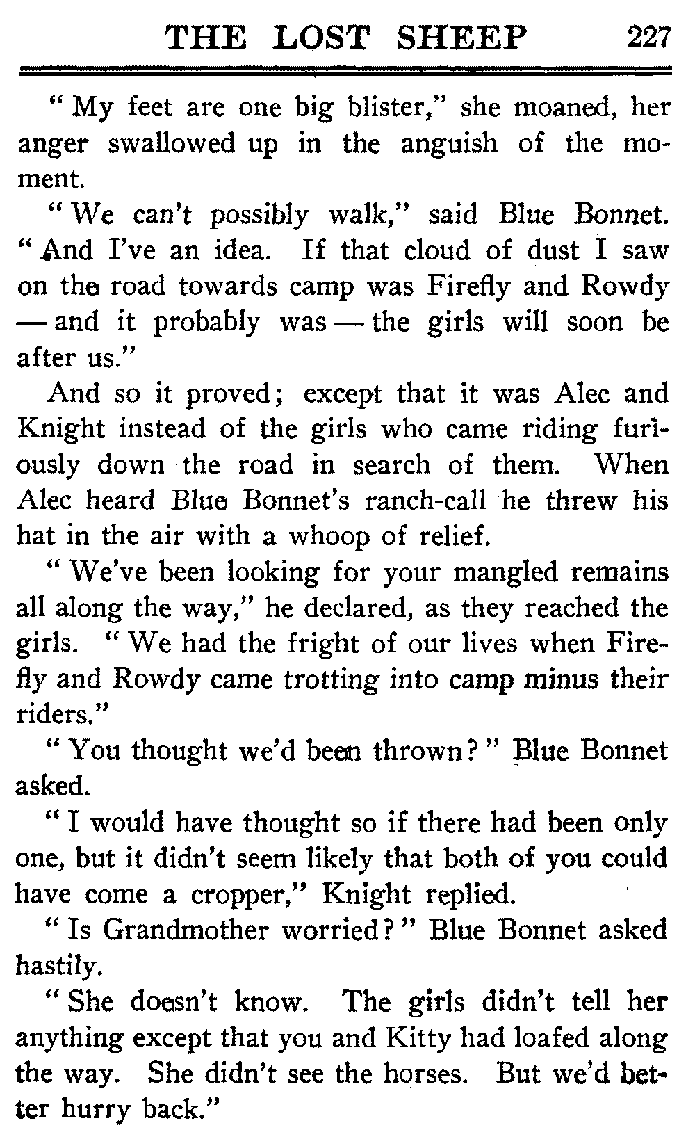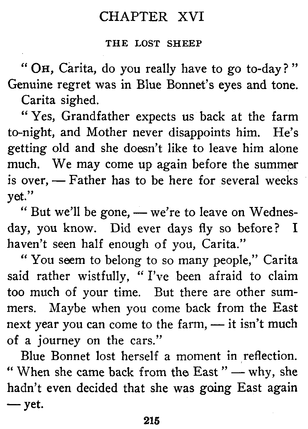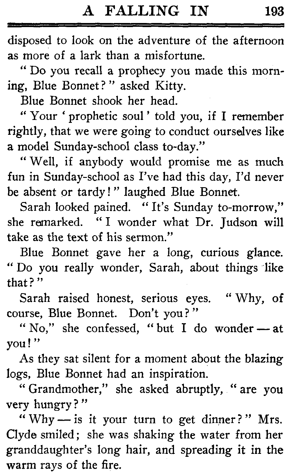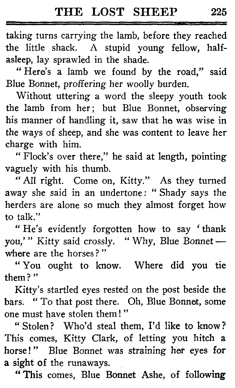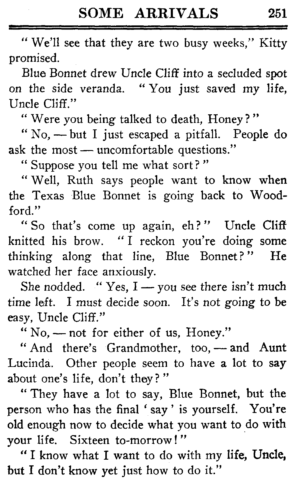 "I reckon Sarah Blake and Kitty Clark aren't very used to travelling?" suggested Uncle Cliff, more to draw out Blue Bonnet than with any consuming desire for information.