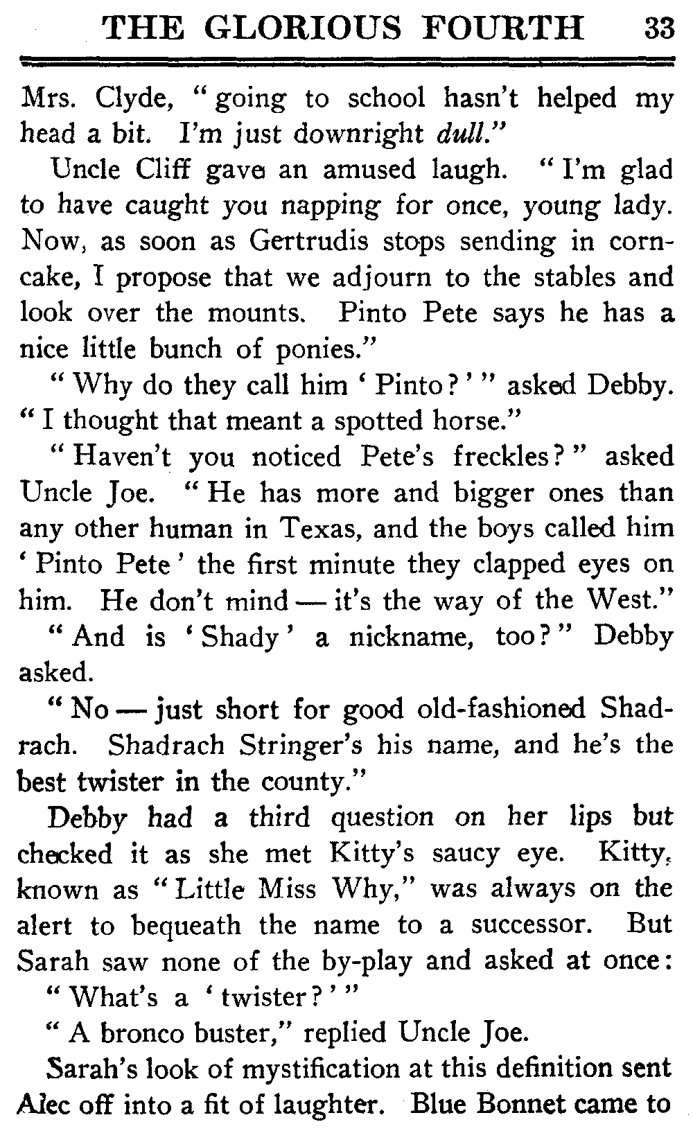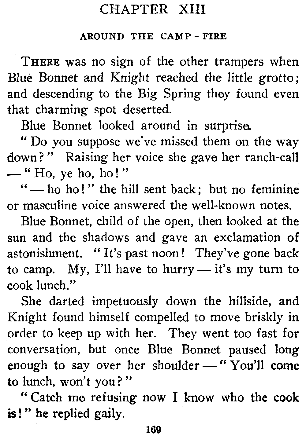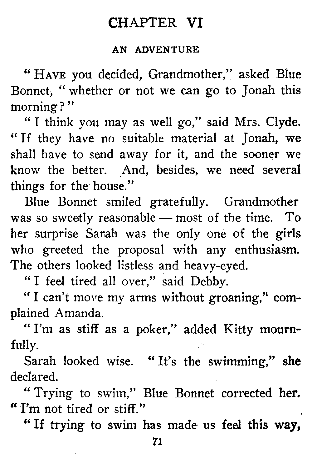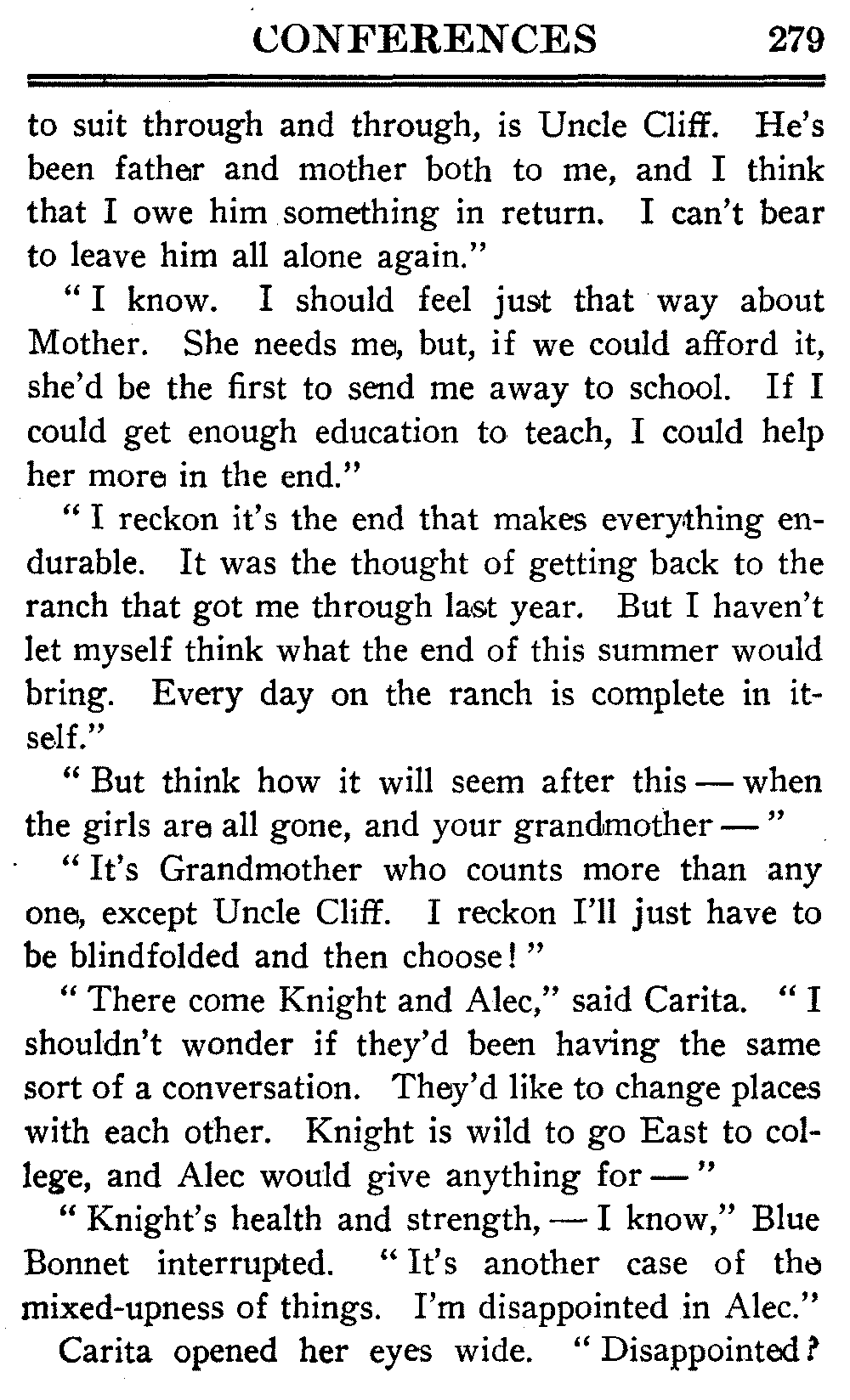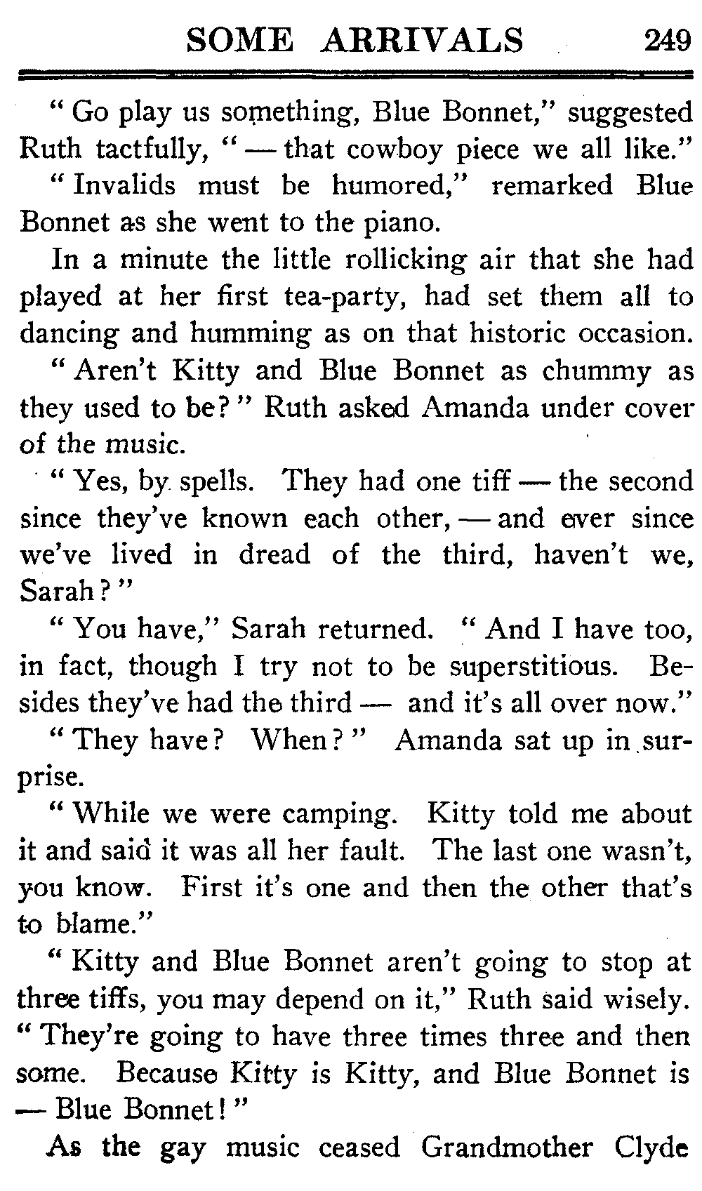 "I reckon Sarah Blake and Kitty Clark aren't very used to travelling?" suggested Uncle Cliff, more to draw out Blue Bonnet than with any consuming desire for information.
