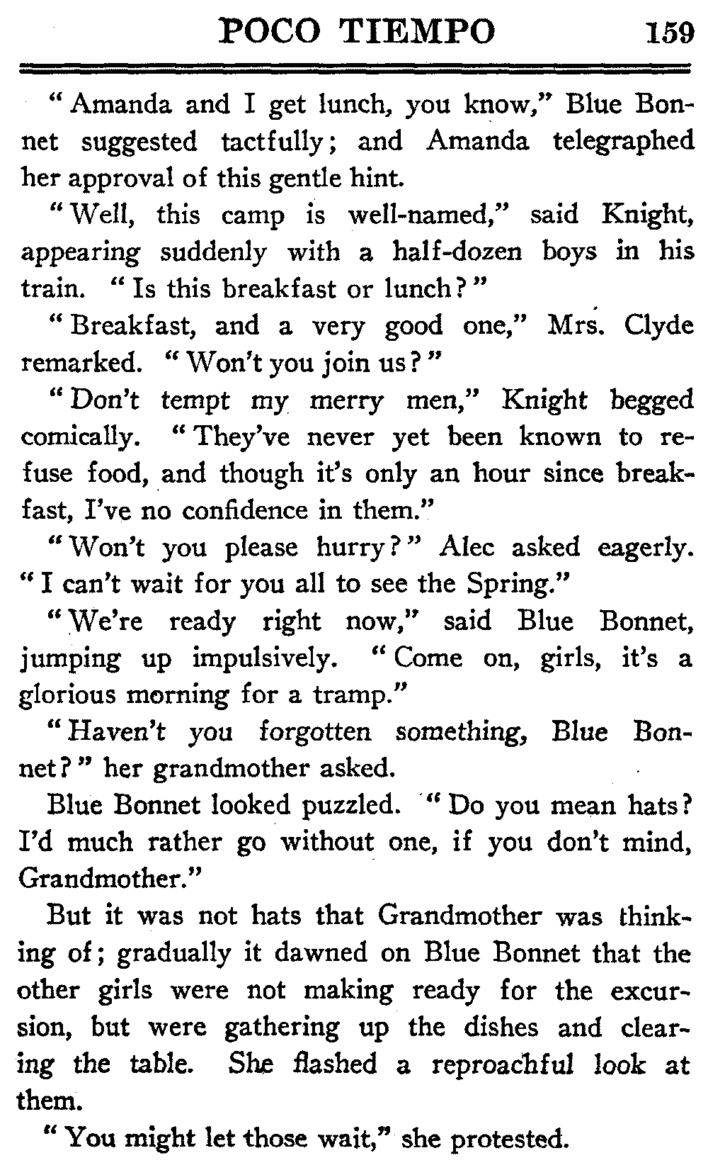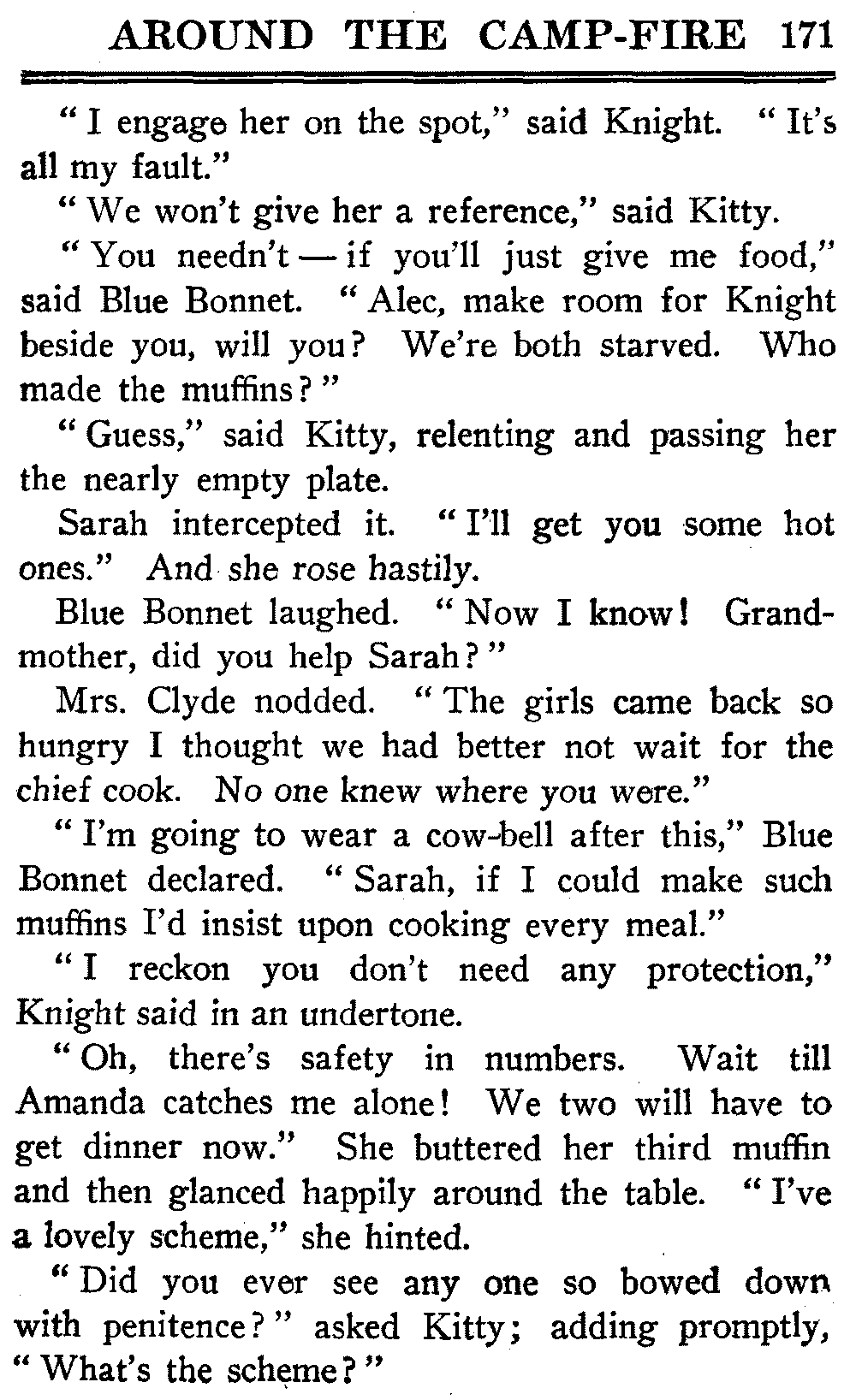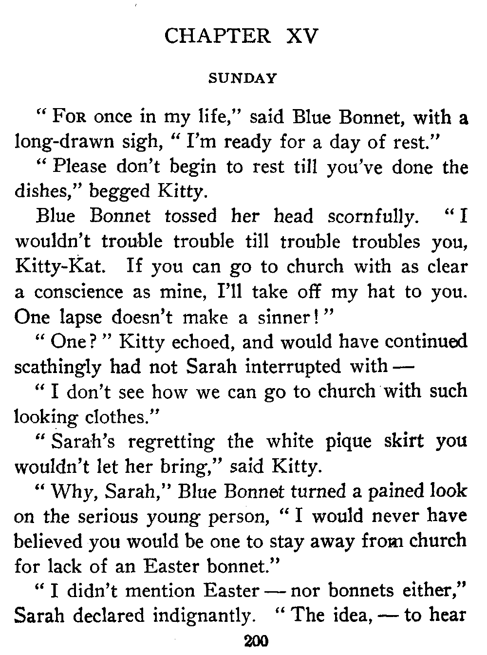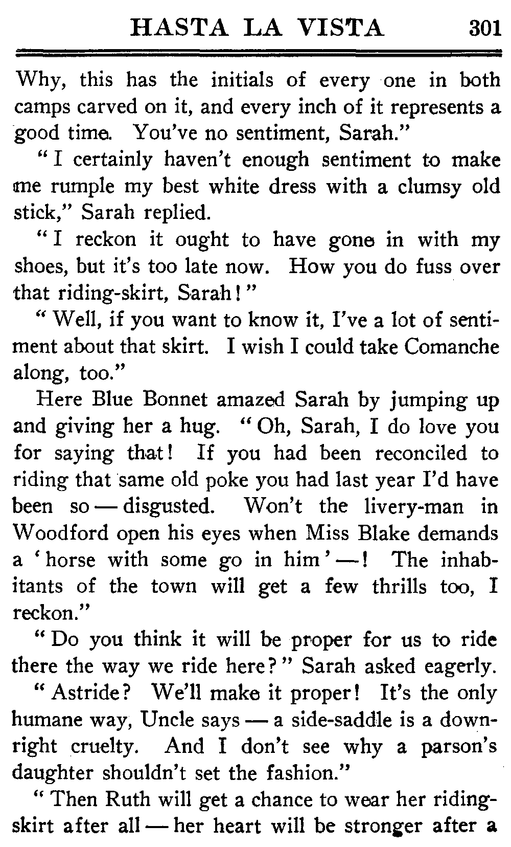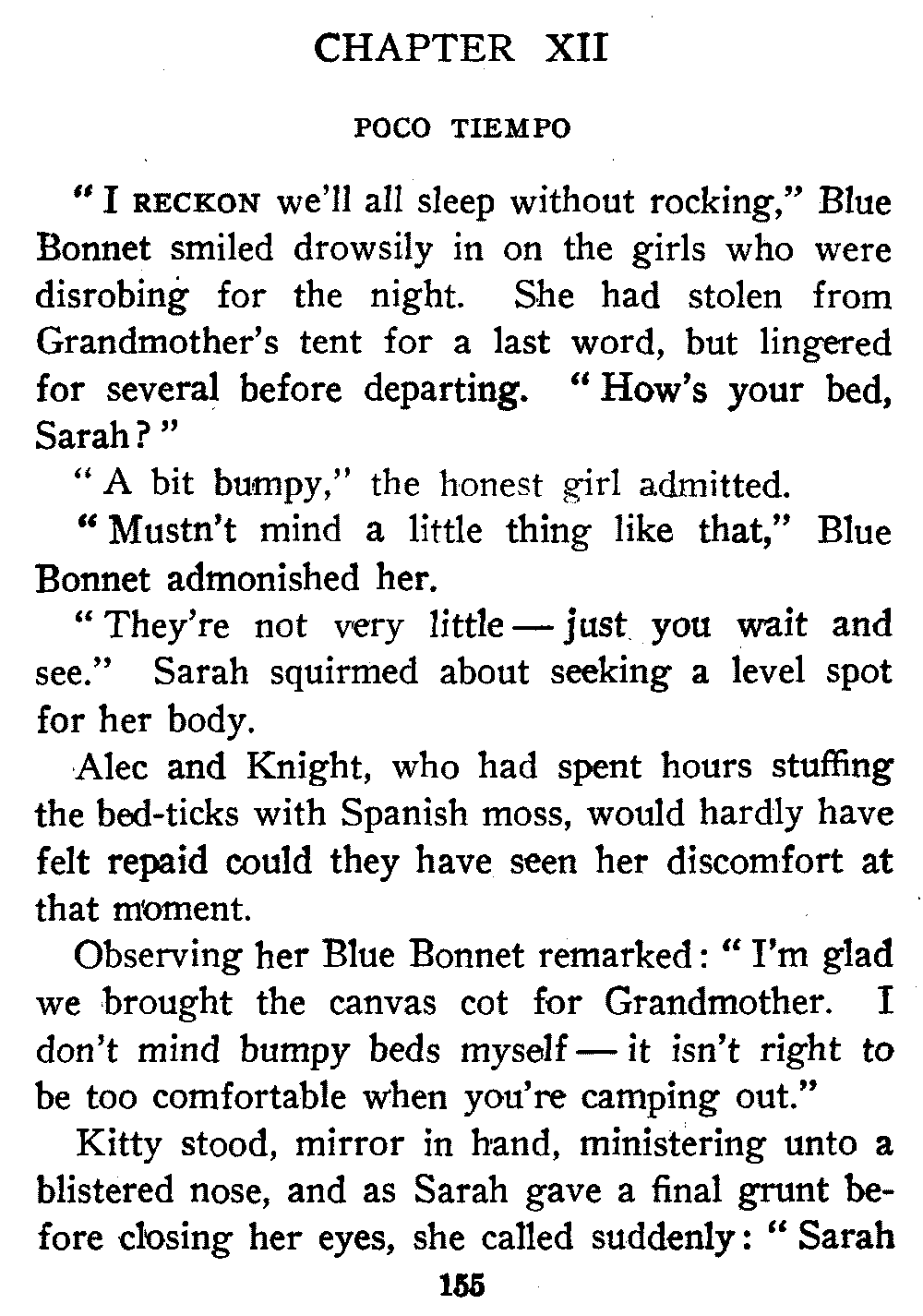 "I reckon Sarah Blake and Kitty Clark aren't very used to travelling?" suggested Uncle Cliff, more to draw out Blue Bonnet than with any consuming desire for information.