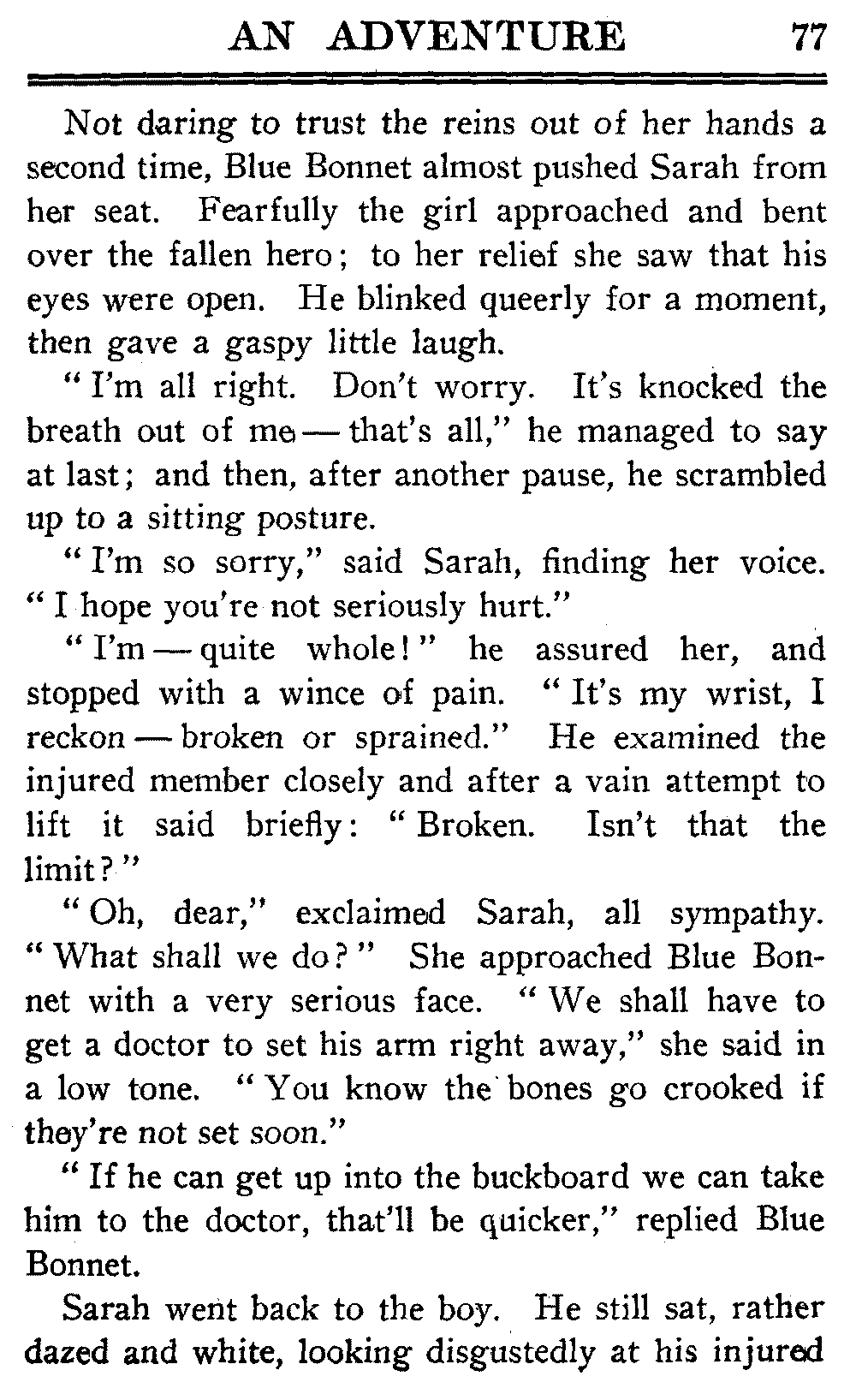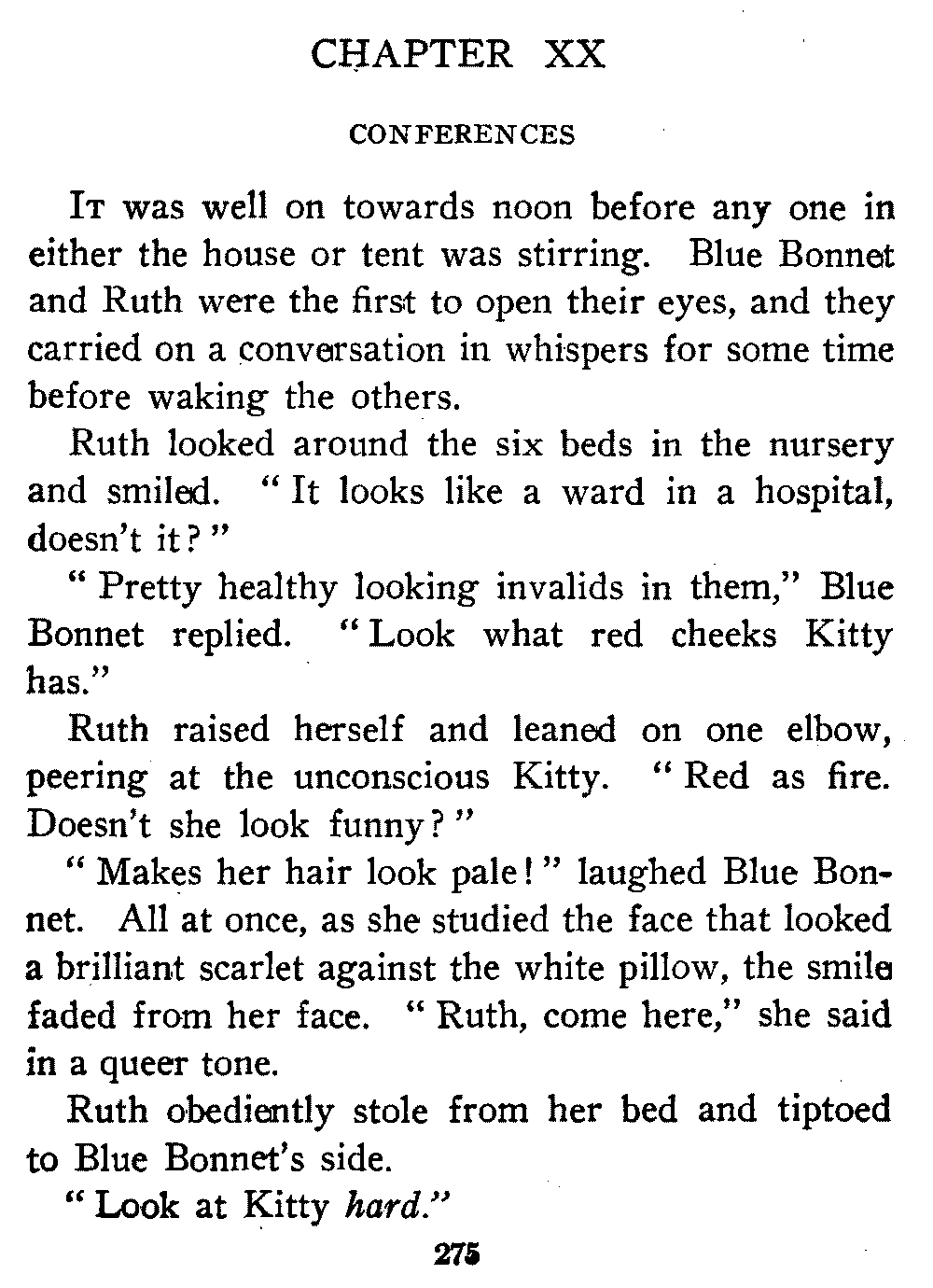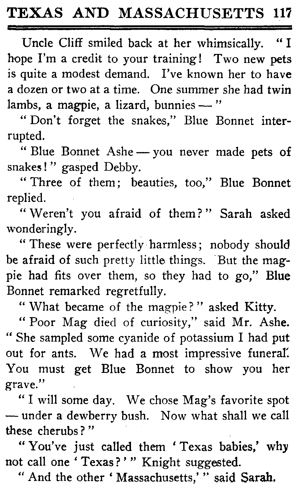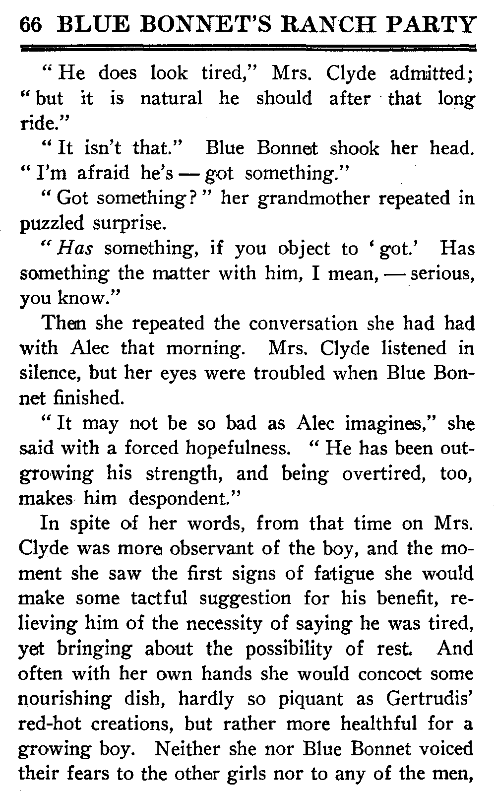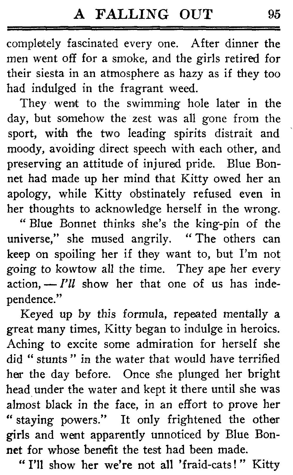 "I reckon Sarah Blake and Kitty Clark aren't very used to travelling?" suggested Uncle Cliff, more to draw out Blue Bonnet than with any consuming desire for information.