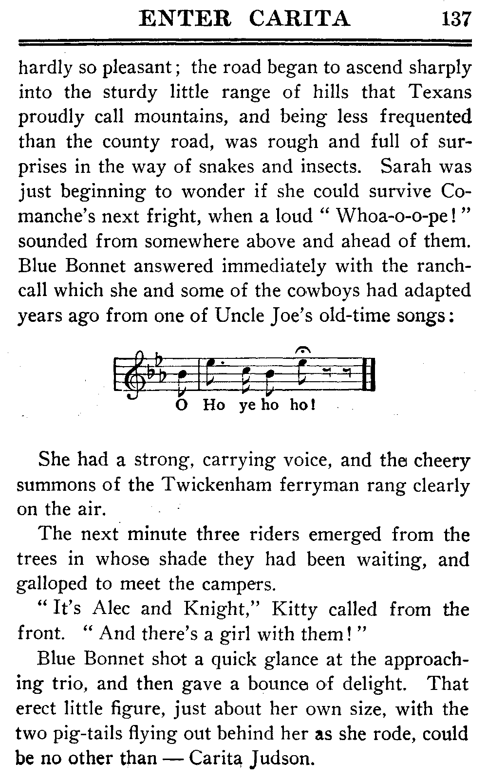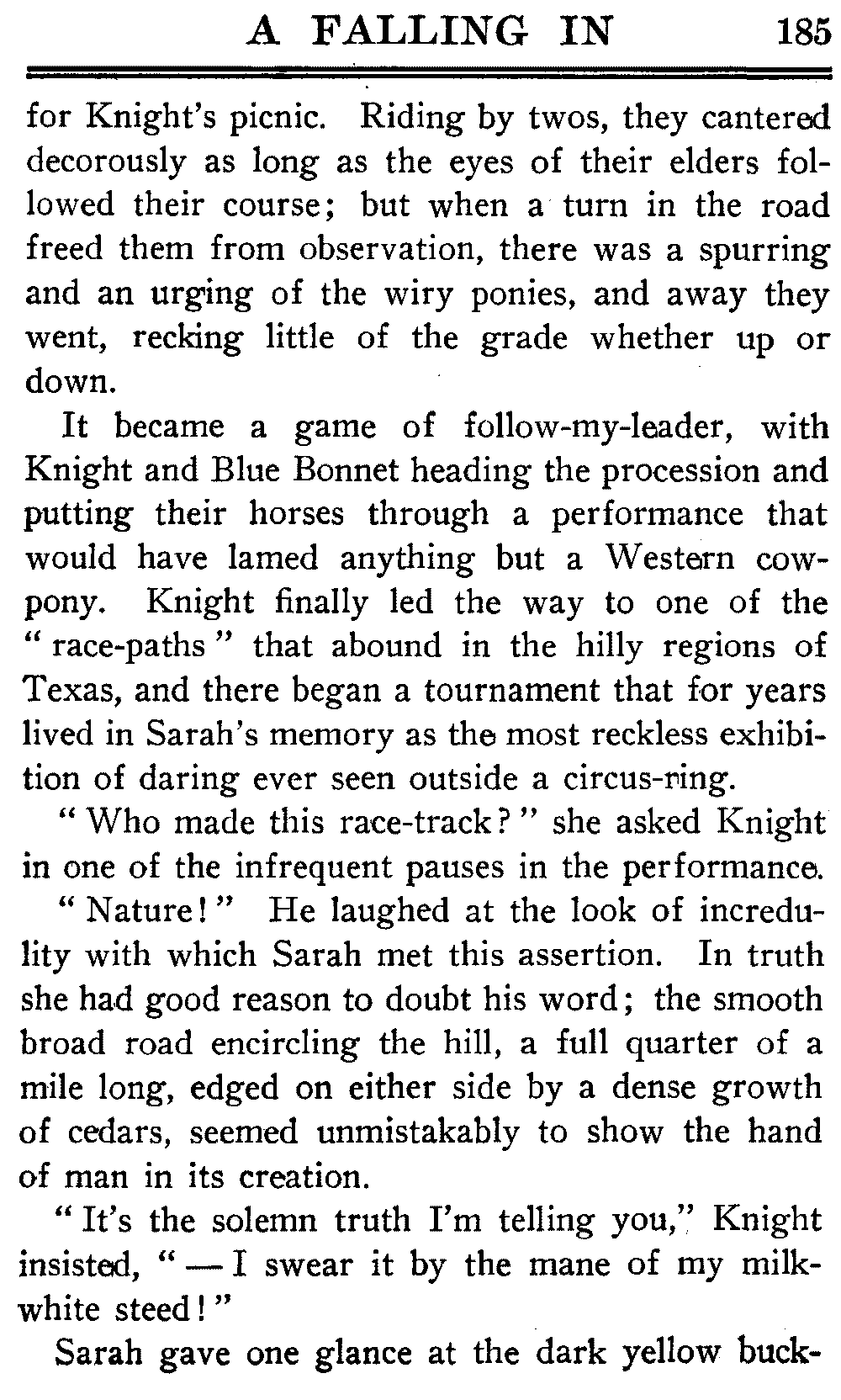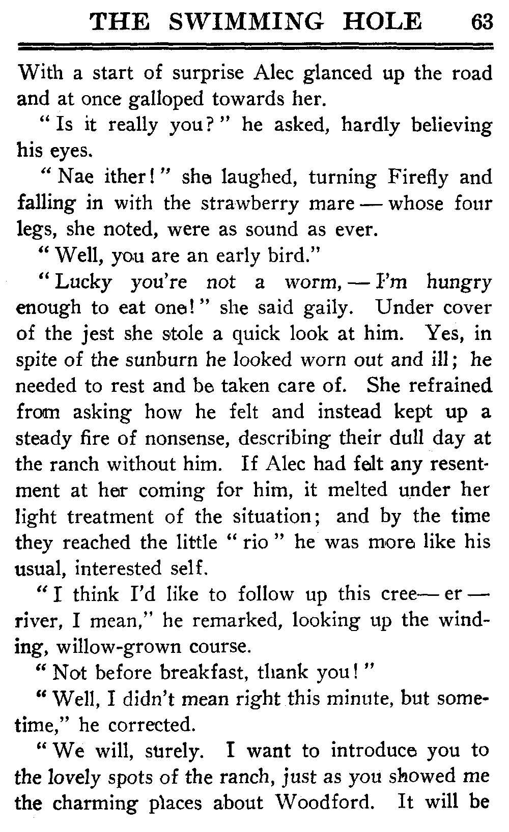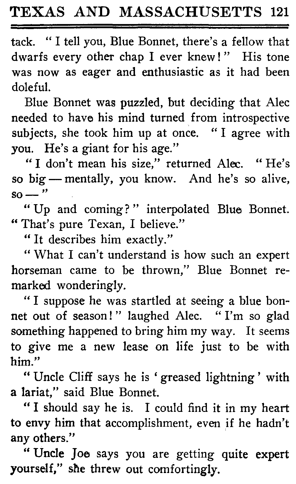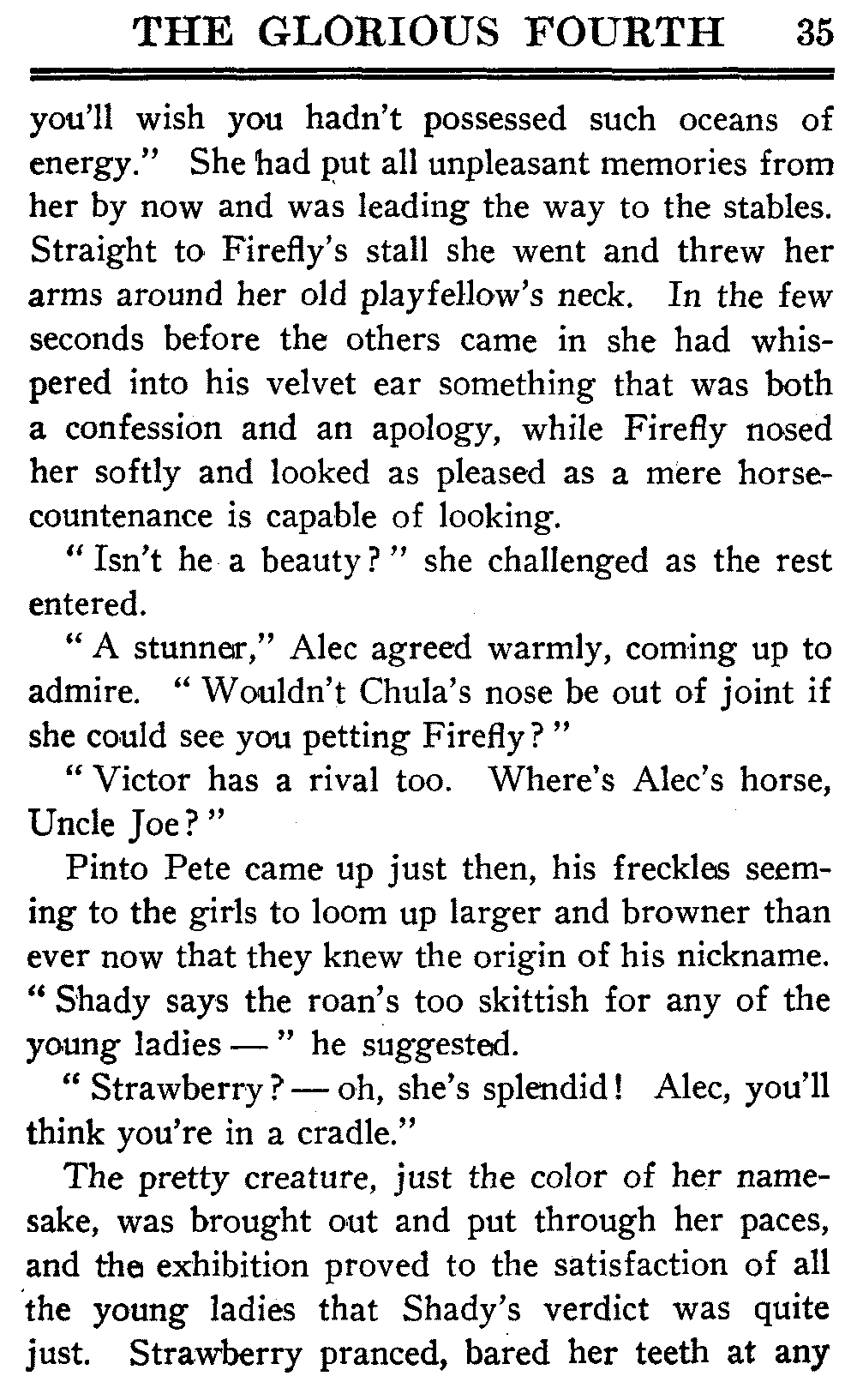 "Nonsense, Honey. That fear died and was buried the day you rode Alec's horse, Victor. A[5] good canter on Firefly over the Blue Bonnet country will make you wonder that such a feeling was ever born."