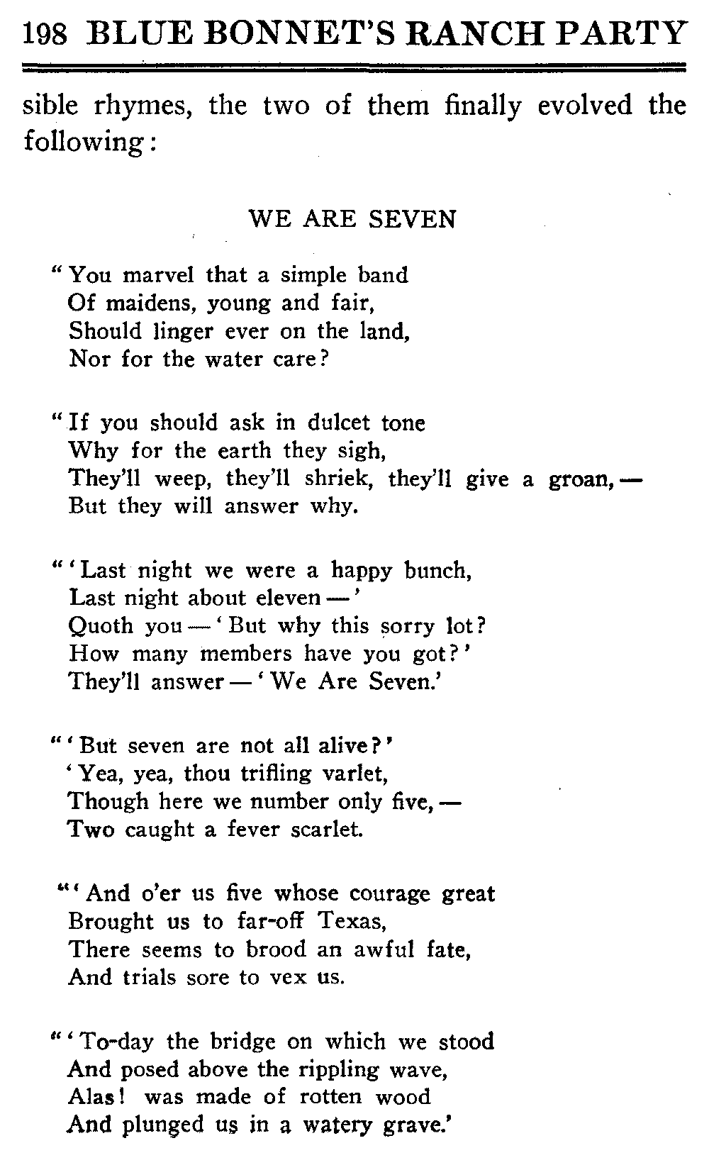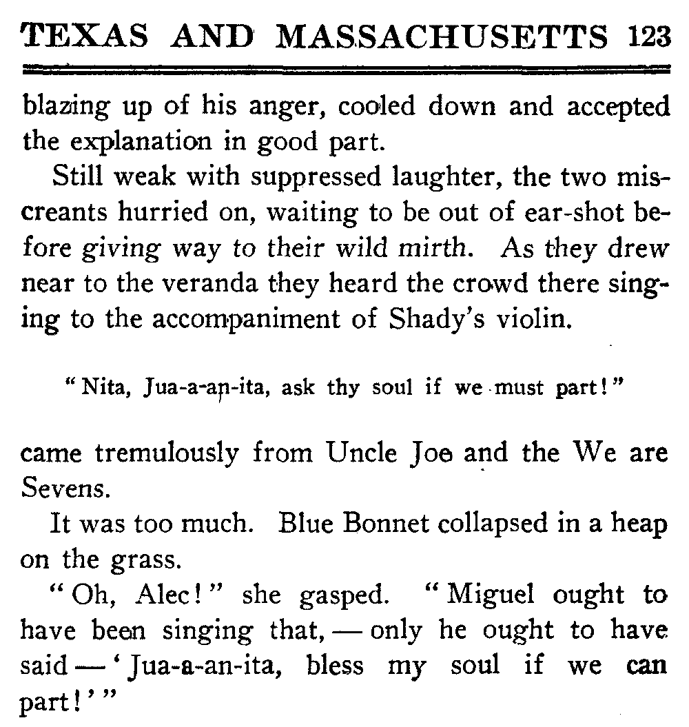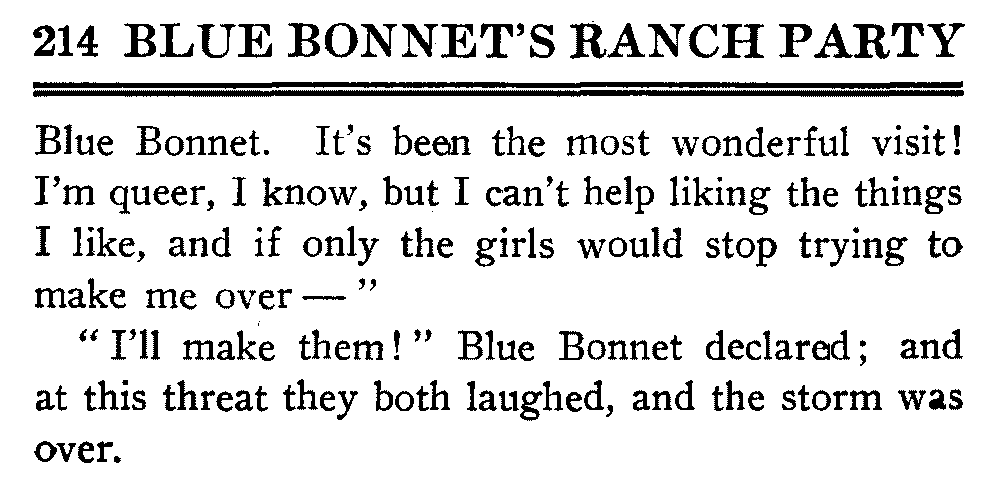 "When I got tired of being Elizabethed. Everybody thinks Blue Bonnet suits me better, except Aunt Lucinda—on occasions."